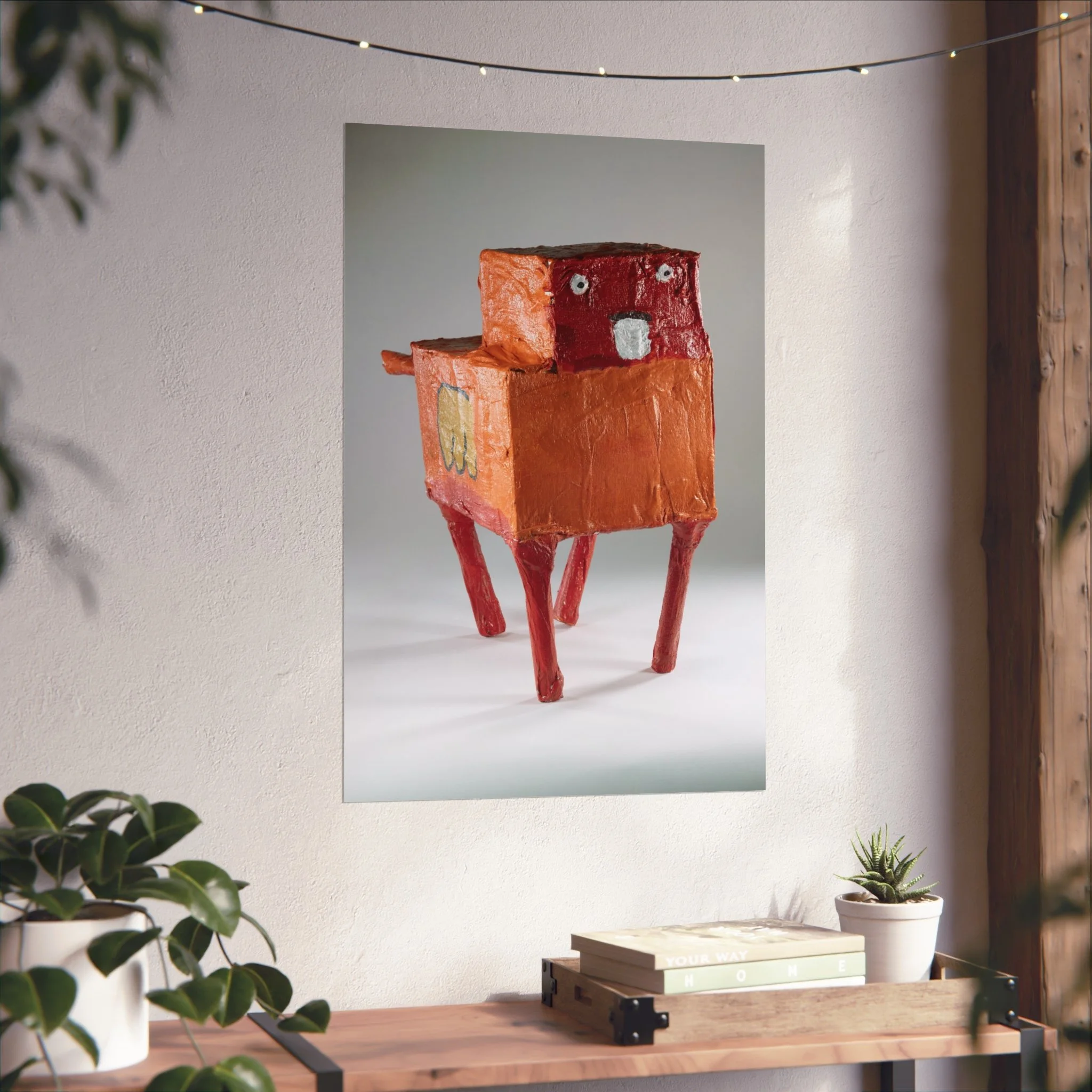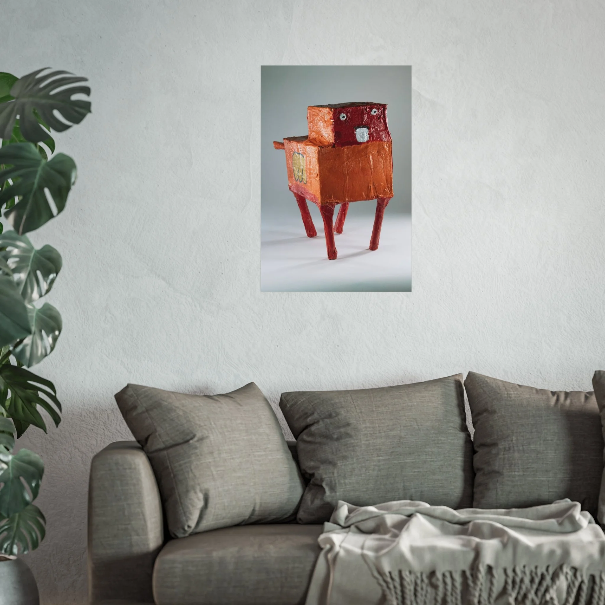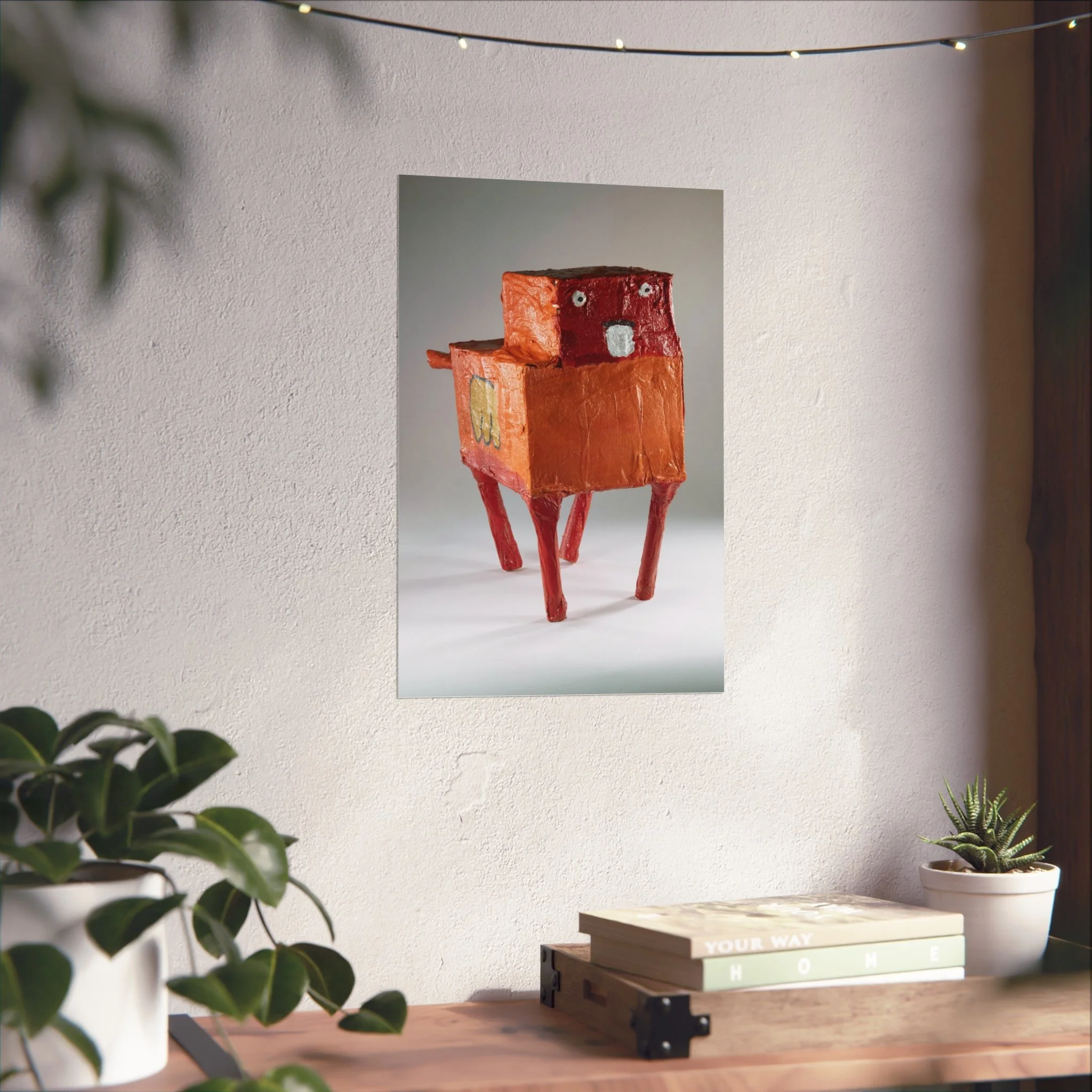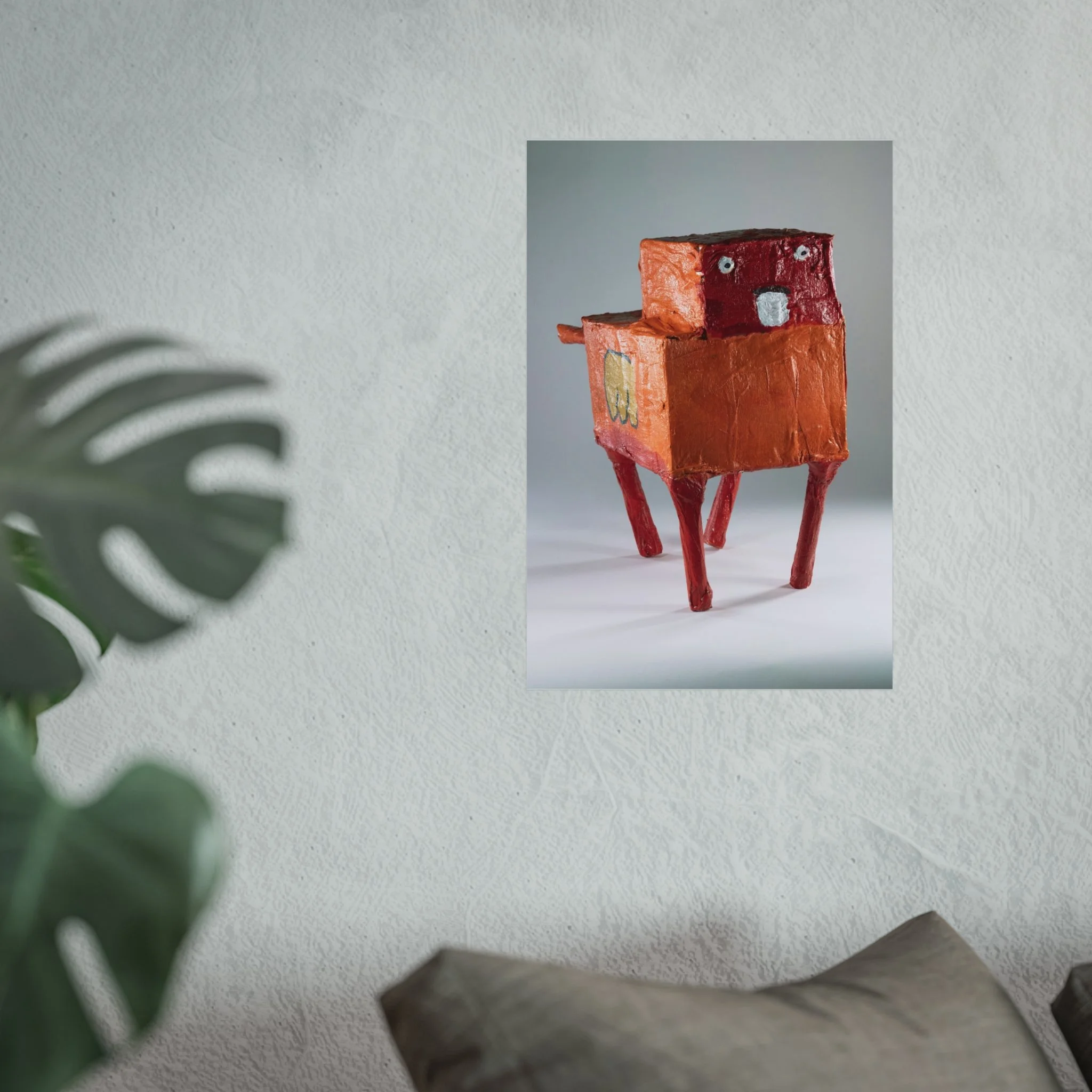 This gallery-quality poster captures a quirky, handmade sculpture rendered in warm terracotta and brick-red tones. Printed on smooth, acid-free 220gsm fine art paper using REACH-certified inks and giclée-quality printing, the image retains rich texture and subtle shadow—bringing the sculptural surface to life on a matte finish. Available in horizontal, vertical and square layouts and multiple sizes, the poster slips easily into a curated wall grouping or stands alone as a conversation-starting focal point. Sustainable sourcing details like EUTR-compliant woodstock in production and UK-sourced blanks add quiet confidence for mindful buyers.