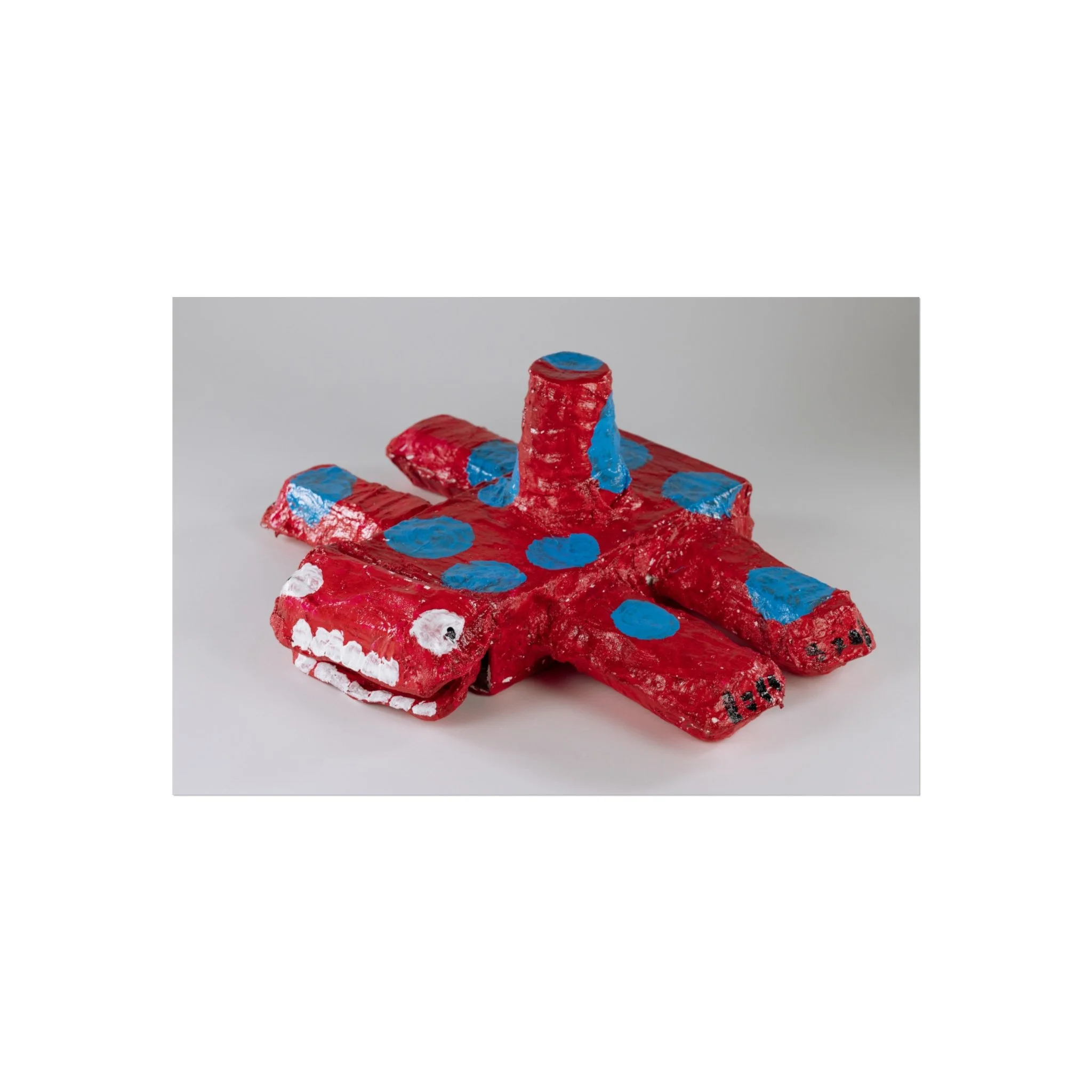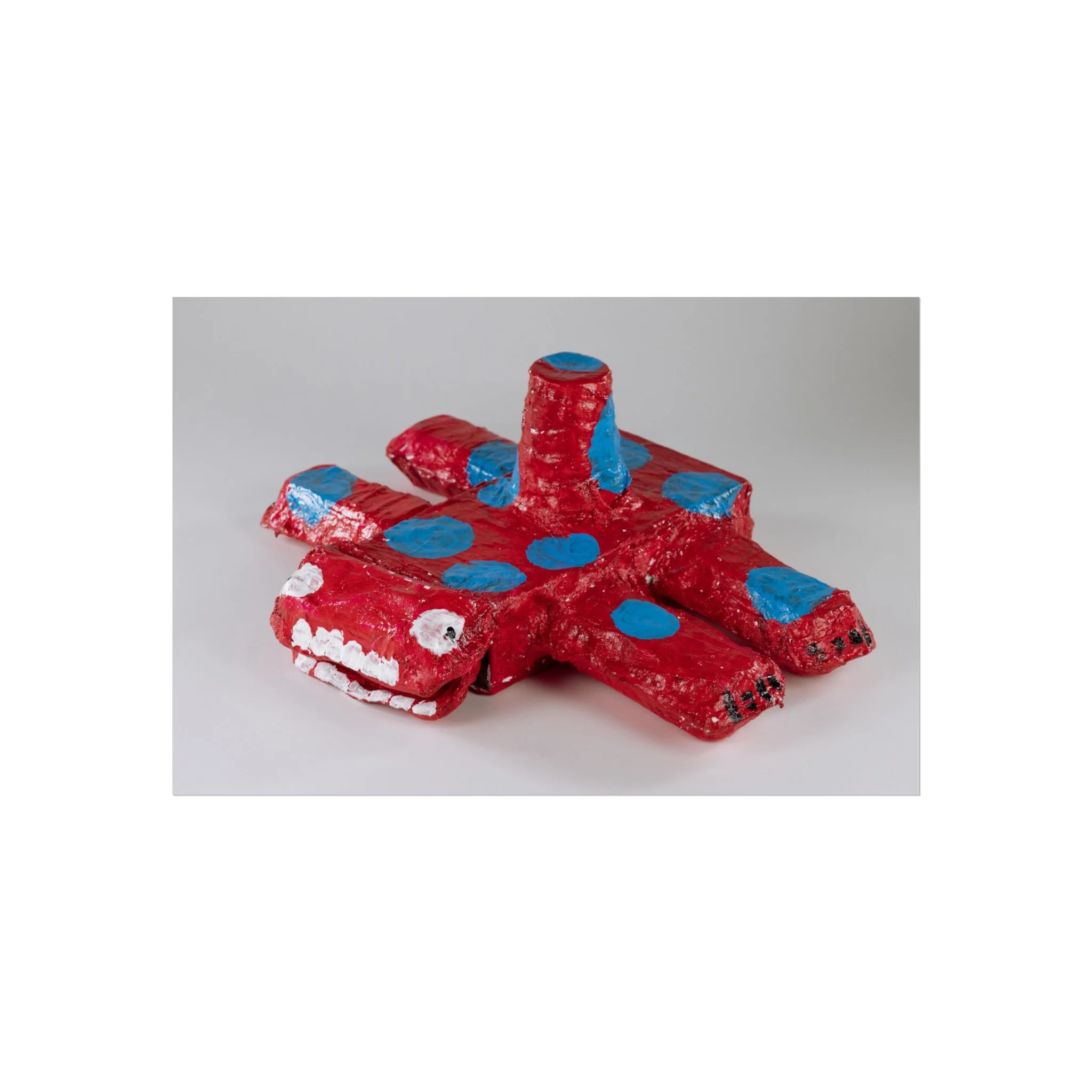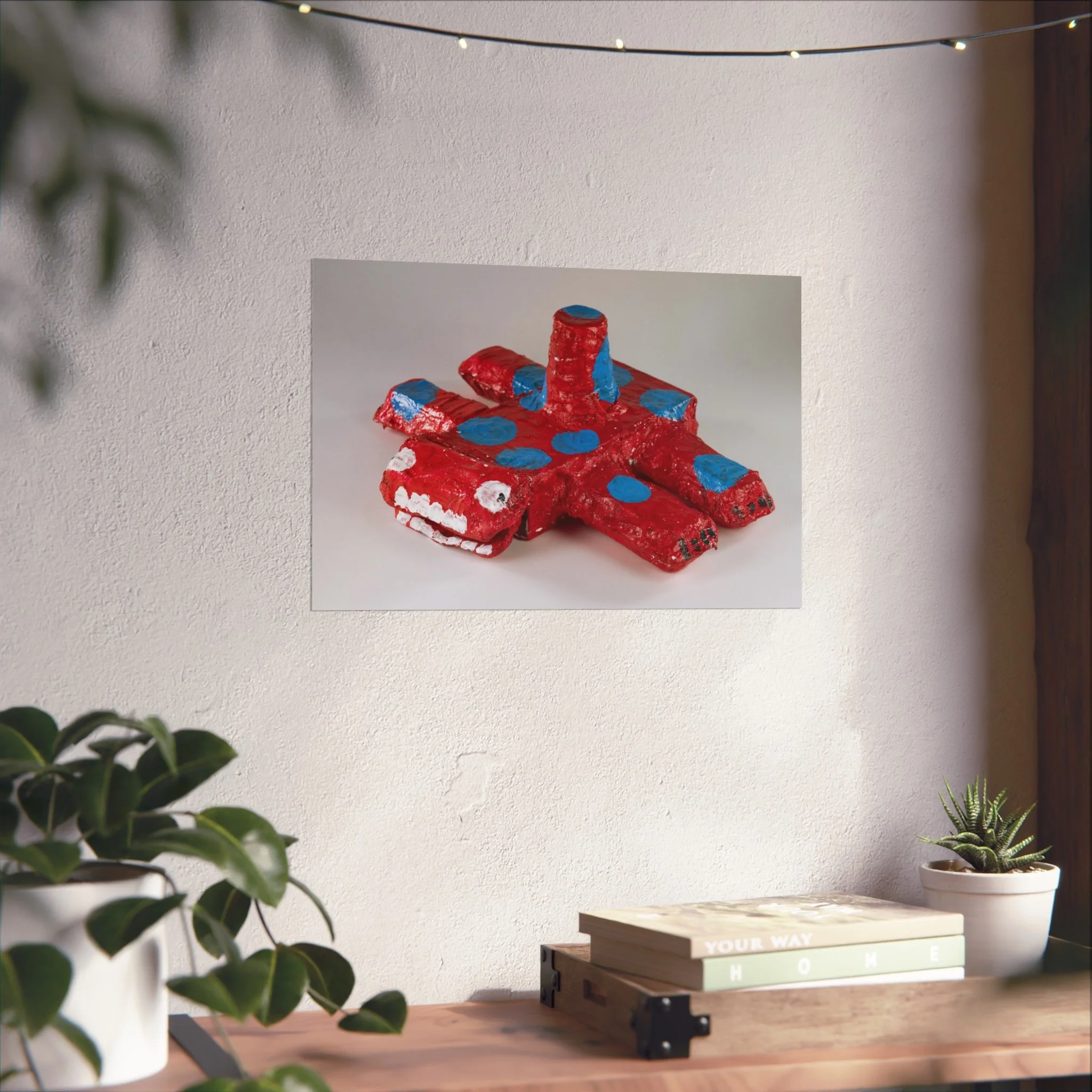 A vibrant fine art poster capturing a playful, hand-crafted sculpture in bold reds and sky blues. The image brings a touch of naïve creativity and tactile charm to any wall—its chunky, whimsical form reads like a joyful relic from a community art project or a child’s imagination grown up. Printed on gallery-grade paper with a smooth matte surface and giclée-quality inks, the colors stay rich and textured without glare. Hang it in a relaxed living room, a creative studio, or a kid-friendly corner to spark conversation and brighten the room with an offbeat, handmade energy.