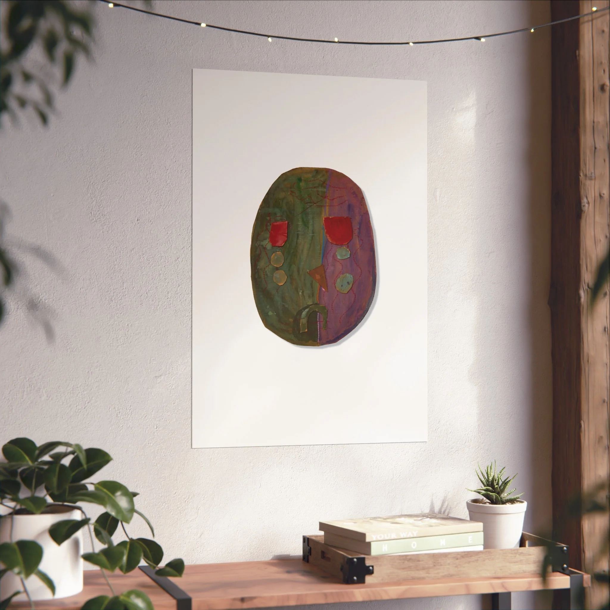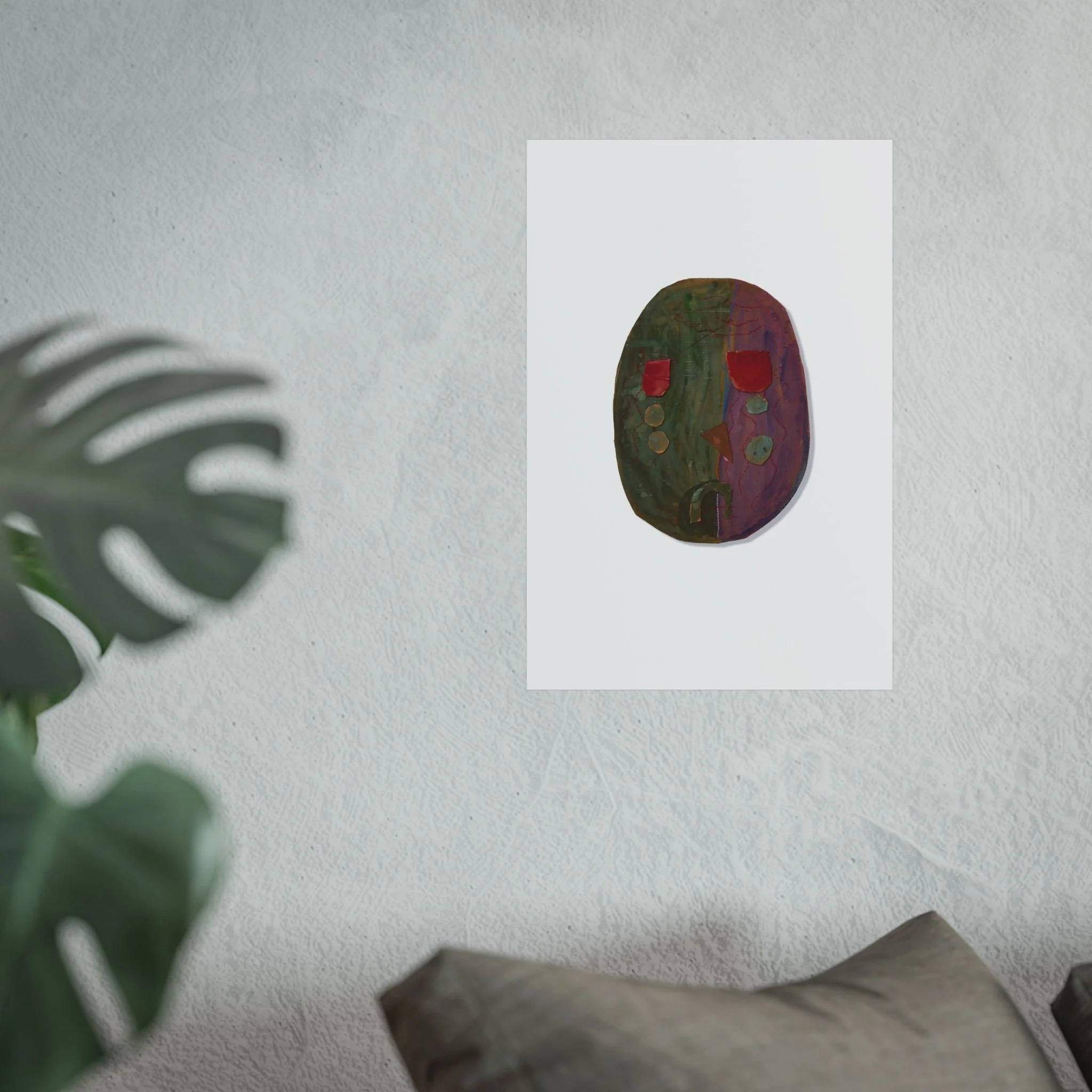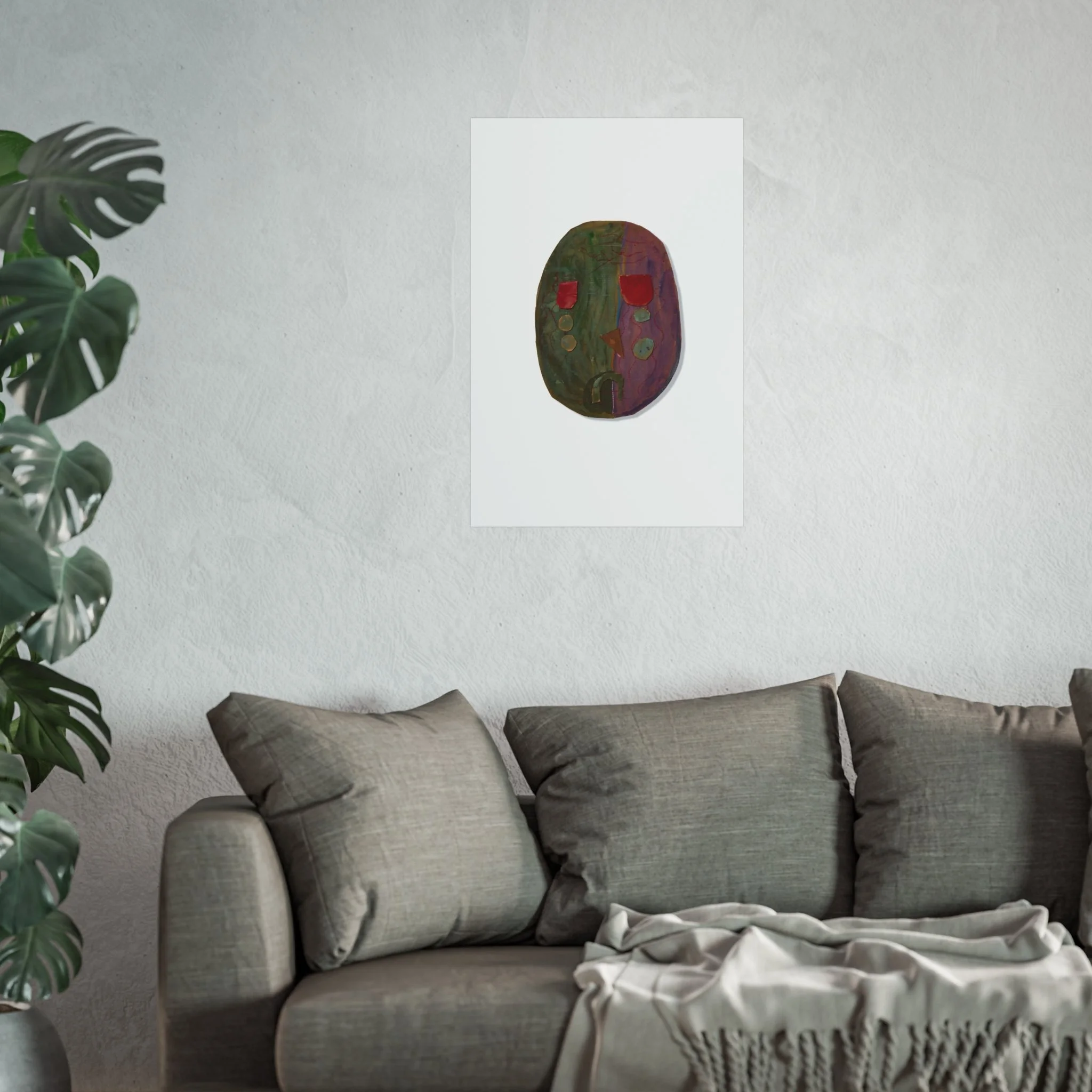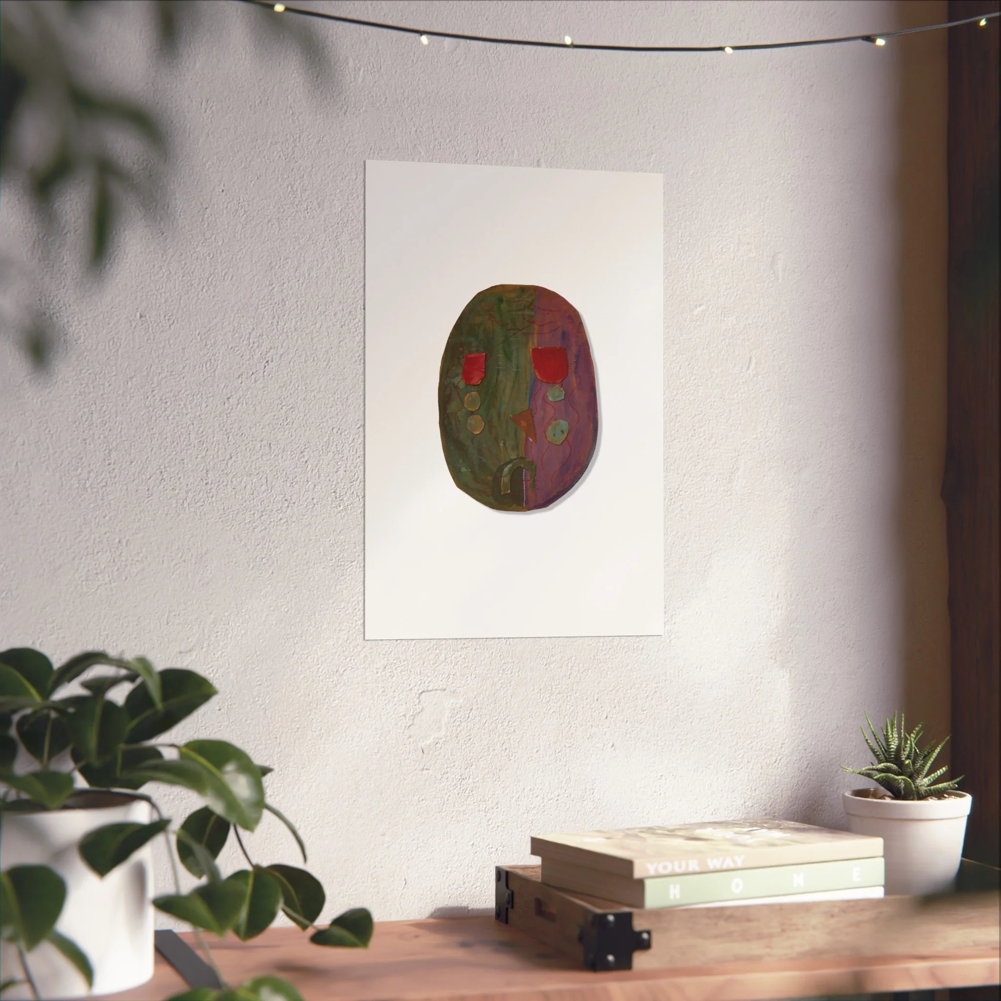 A contemplative fine art poster that brings an intimate, painterly presence to a room. The muted, hand-painted face at the center—warm greens, dusky purples and small bursts of crimson—feels like a quiet companion on the wall. Printed on smooth, gallery-grade 220gsm paper with giclée quality and REACH-certified inks, the image keeps its subtle texture and soft matte finish over time. Choose from horizontal, vertical or square formats and multiple sizes to suit a small nook above a sofa or a curated gallery wall. This print settles easily into slow, lived-in interiors—reading corners, creative studios, or calm bedrooms—inviting quiet reflection and conversation.