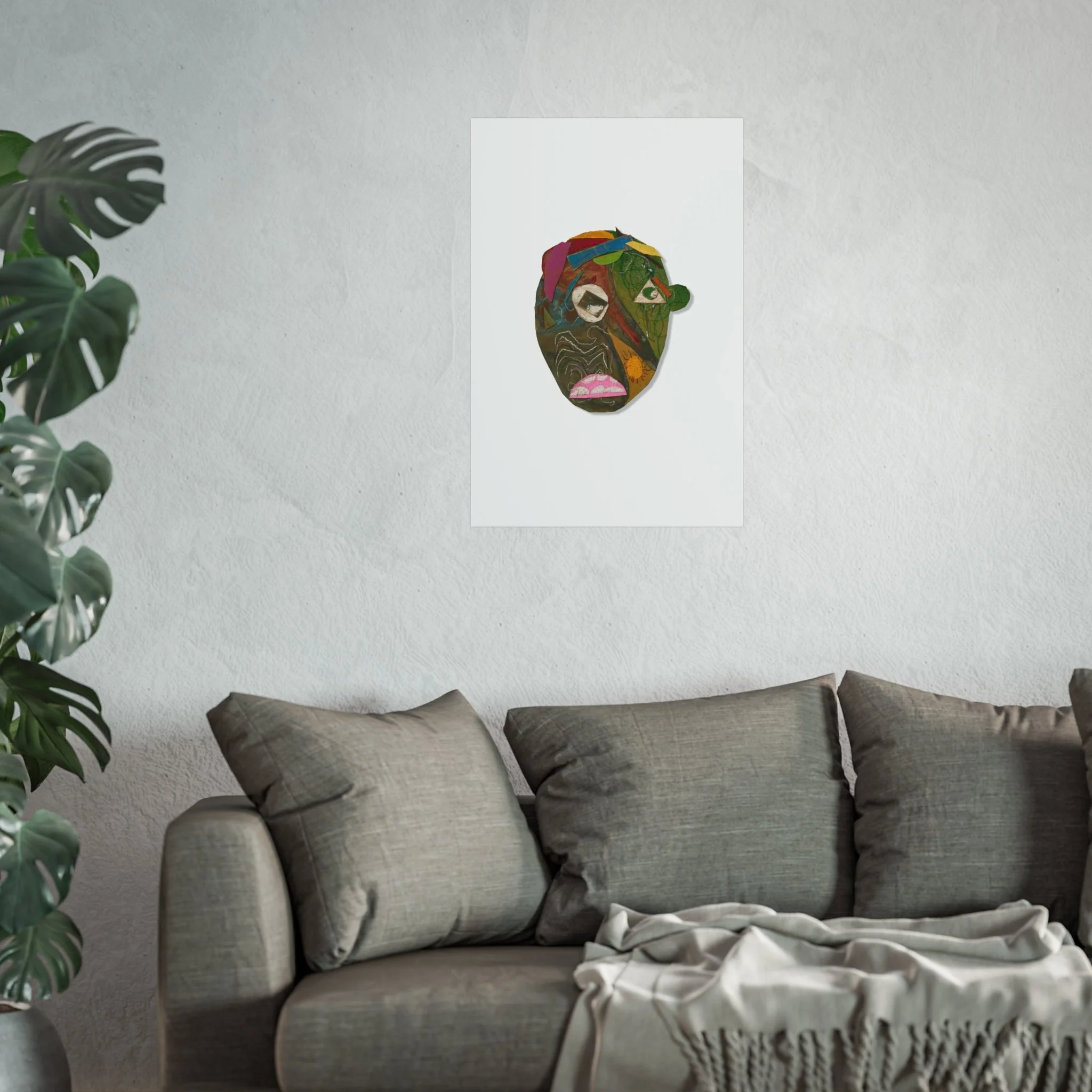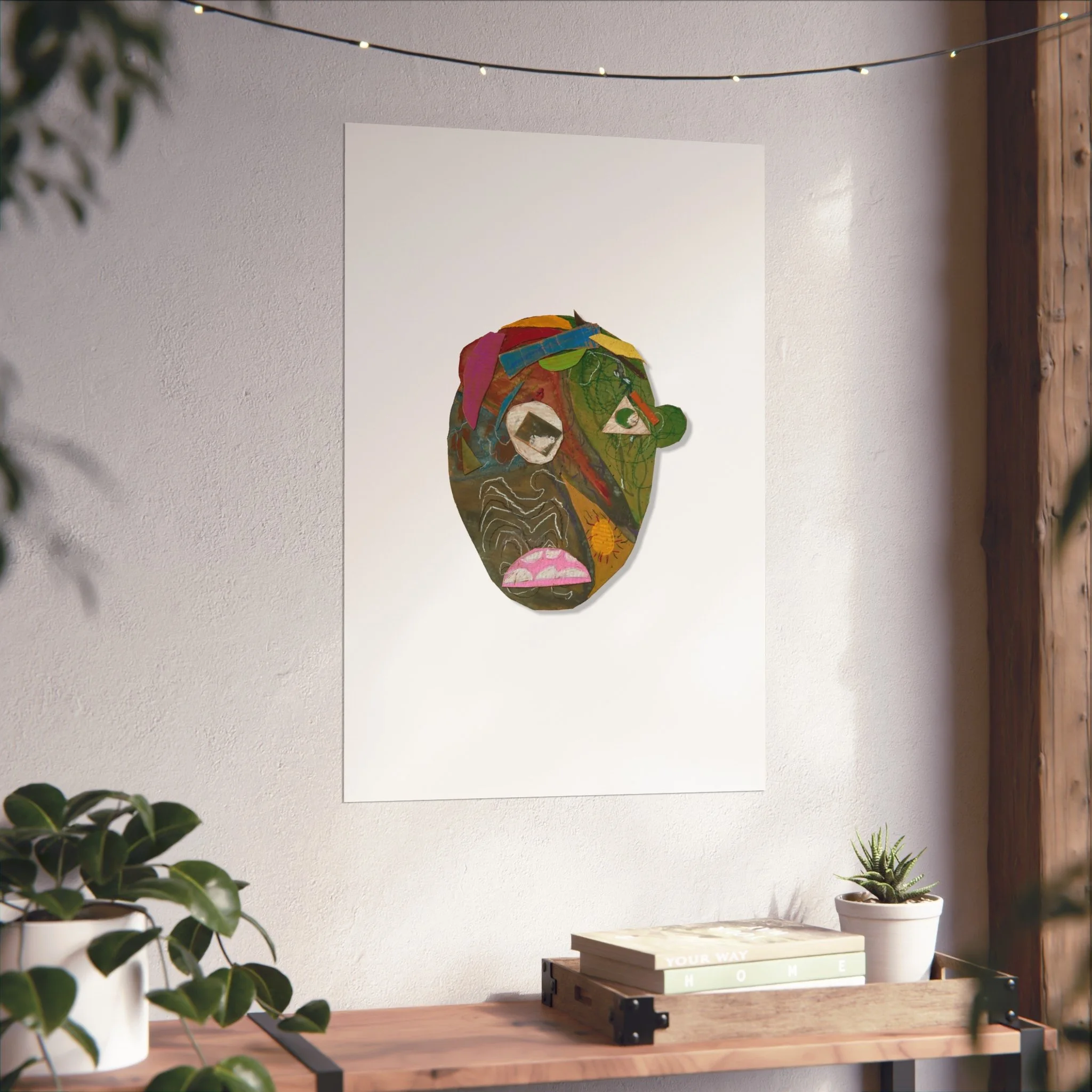 Hand-pulled color and texture come together in this archival fine art poster to create a small, striking portrait that feels both playful and uncanny. Printed with REACH-certified inks on smooth, gallery-grade 220gsm acid-free paper, the image’s layered marks and saturated hues hold depth without glossy glare thanks to a matte finish. Choose horizontal, vertical or square formats in multiple sizes to suit a narrow hallway, a cozy reading nook, or a curated gallery wall. The subtle weight of the paper and giclée-quality printing make the piece read as an original study — something to discover in quiet moments and to return to when you want a spark of unexpected color in your space.