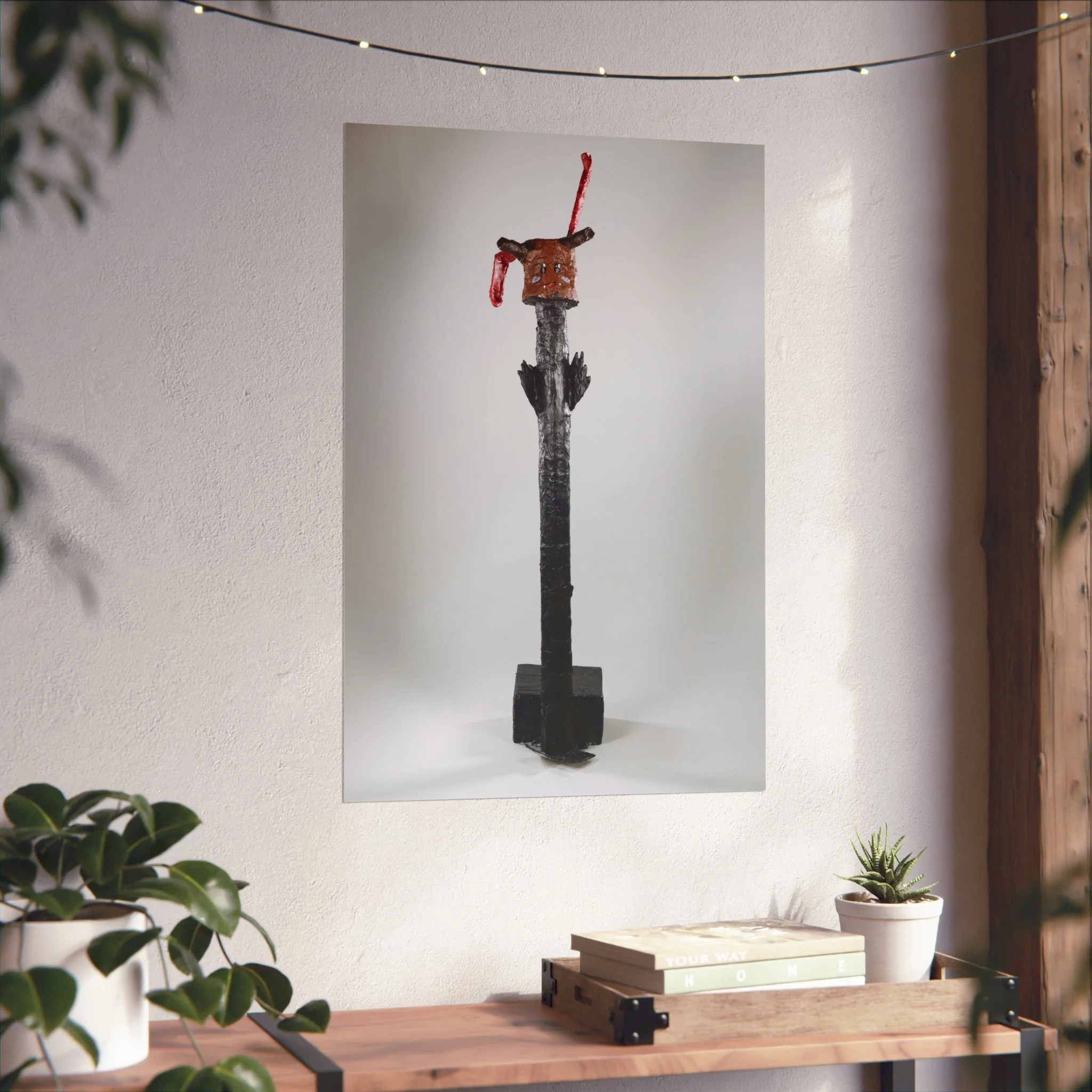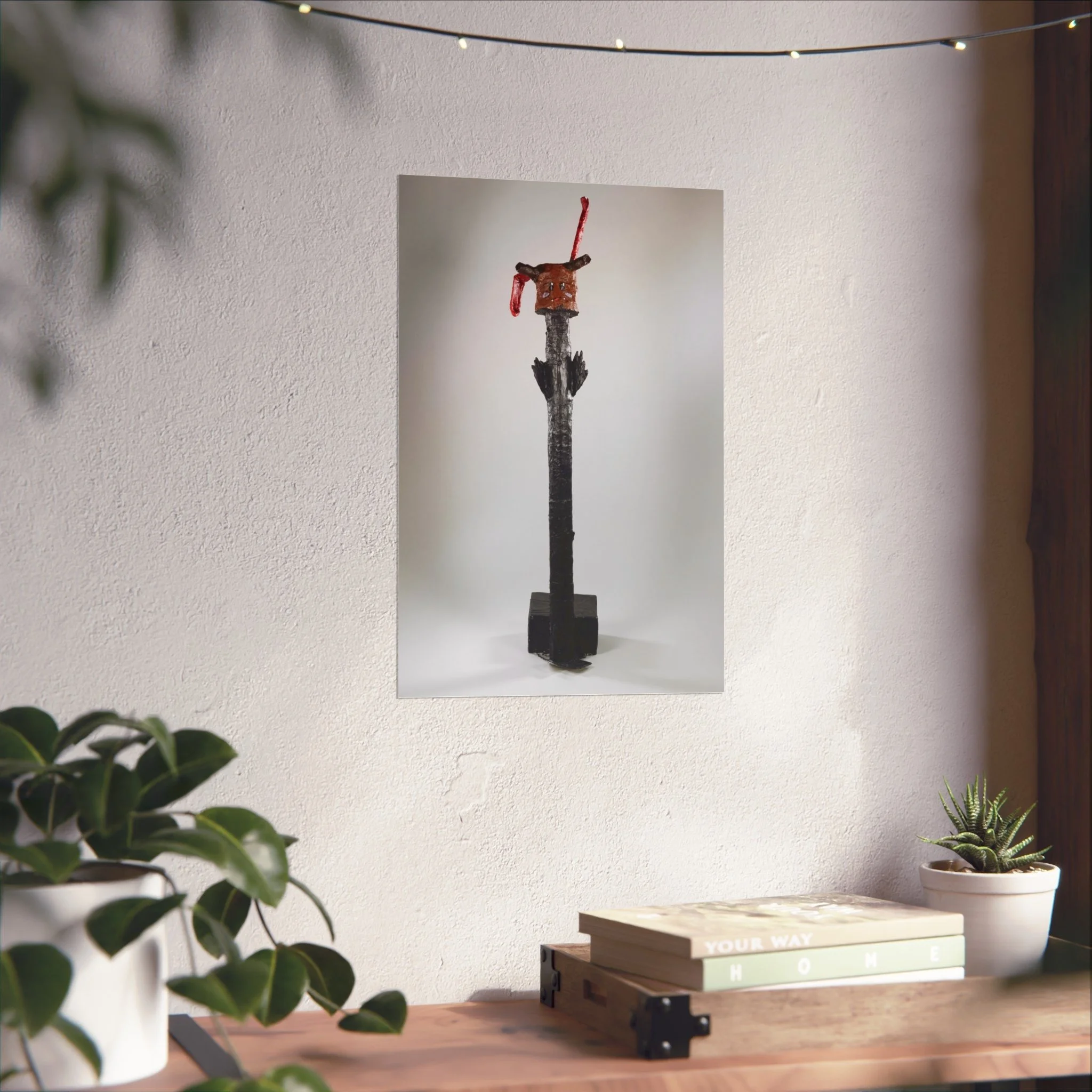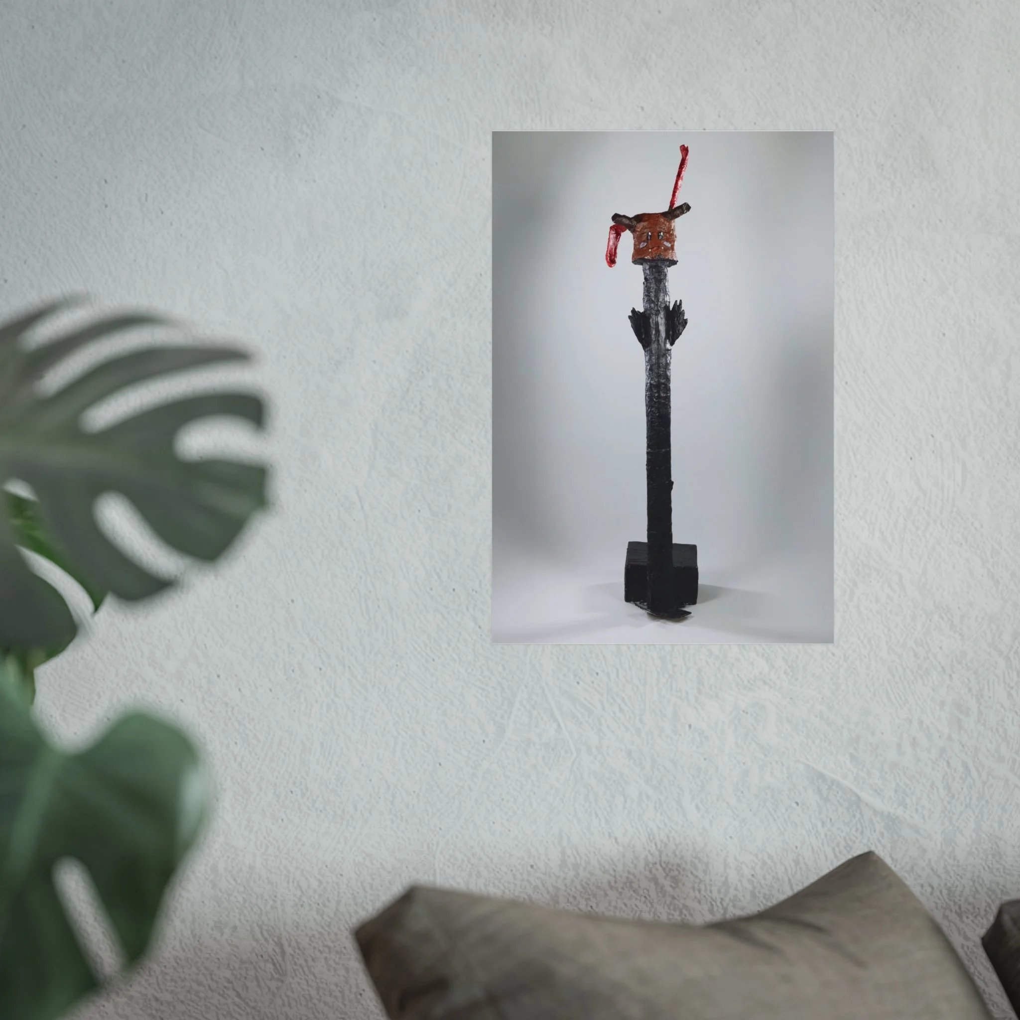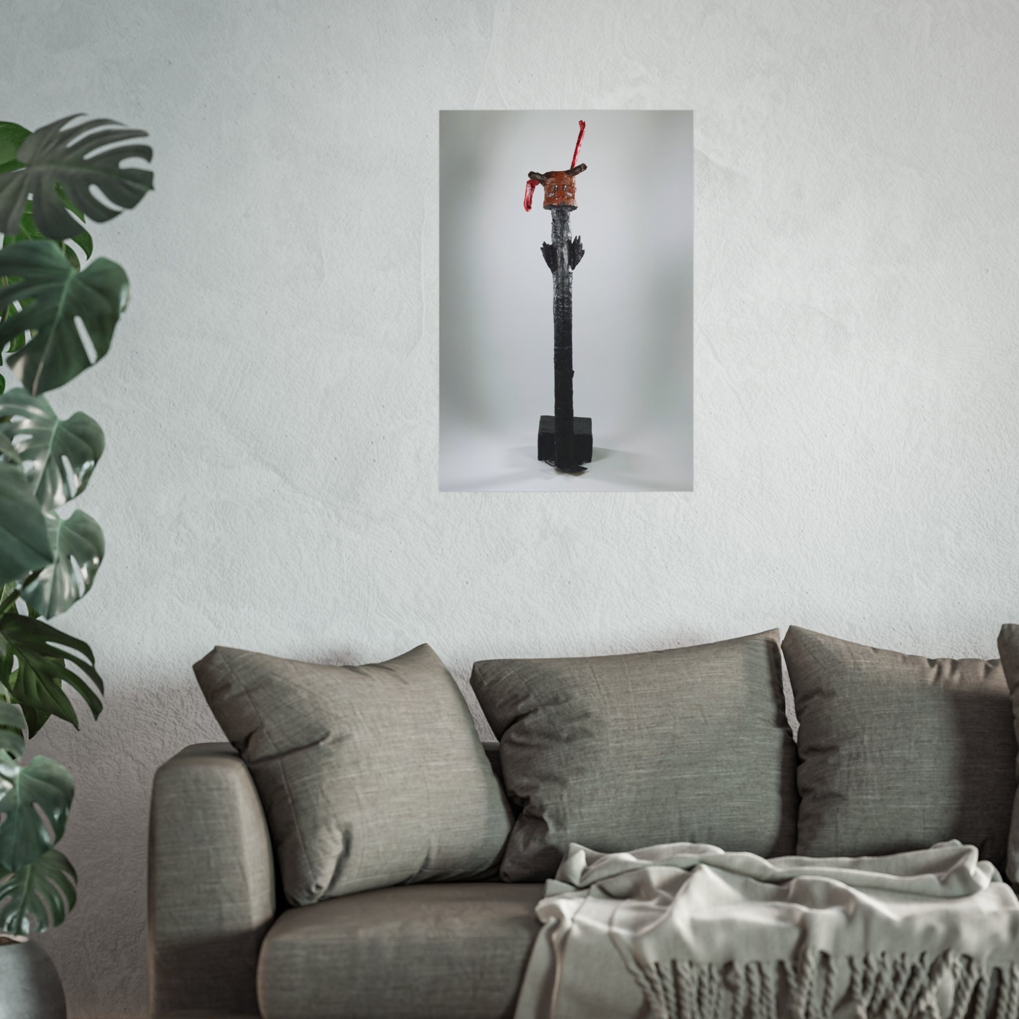 A striking fine art poster that captures a sculptural moment—tall, tactile and raw. Printed on smooth, gallery-grade 220gsm paper with giclée-quality REACH-certified inks, this piece preserves subtle textures and muted tones while maintaining a soft matte finish. The composition’s vertical presence brings a quiet, sculptural energy to a living room wall, studio corner, or minimal gallery space. It reads like a found object photographed with reverence: worn surfaces, a single bright accent, and an honest sense of materiality that invites closer inspection and slow looking.