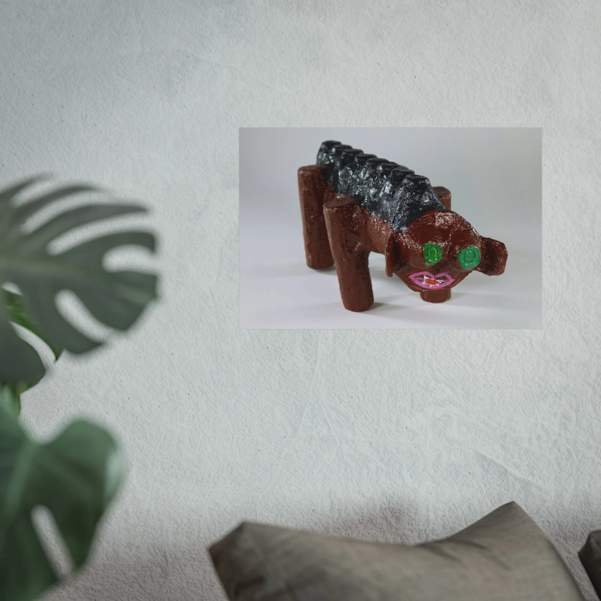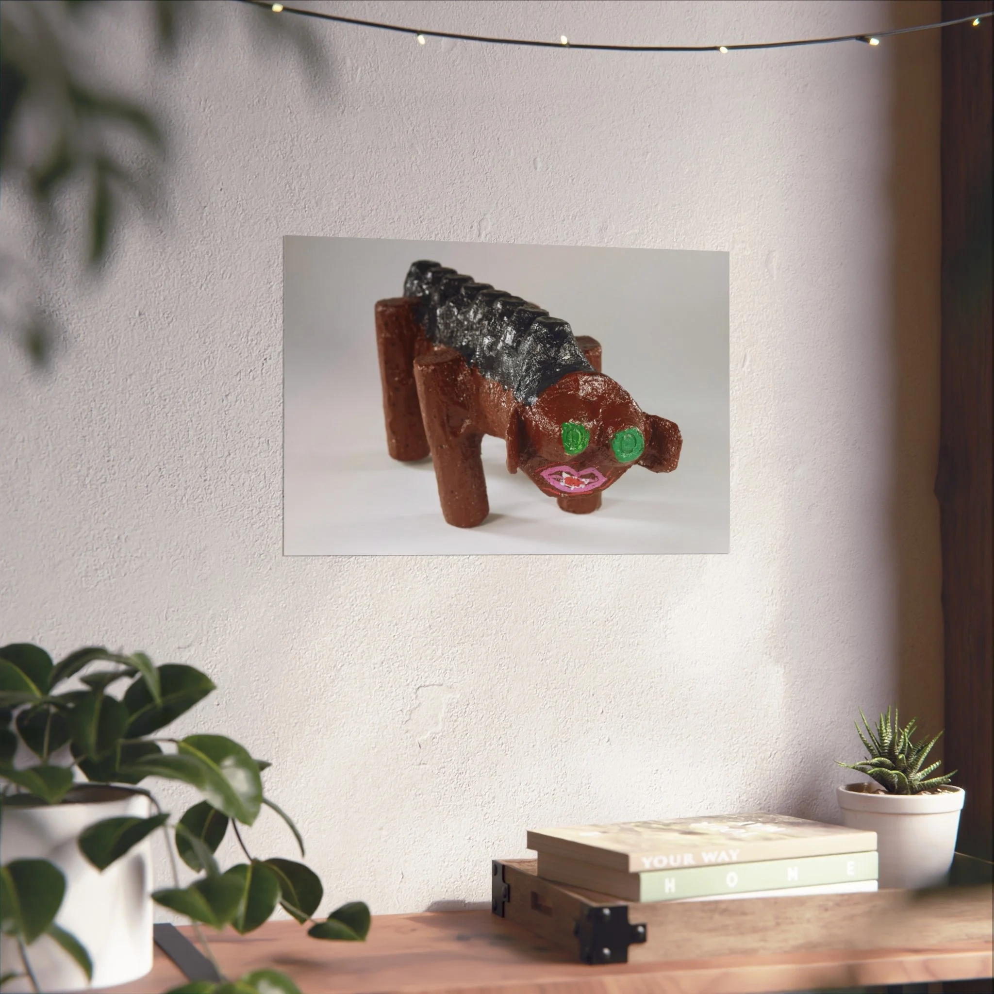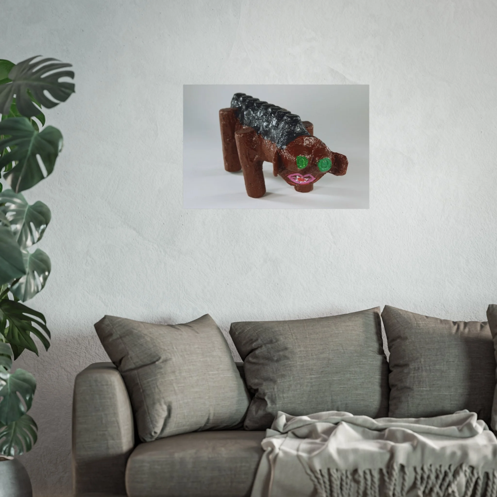 This fine art poster captures a playful, primitive sculpture — a small, hand-crafted creature with bright green eyes and a mischievous smile — reproduced with museum-quality detail. Printed on smooth, gallery-grade 220gsm acid-free paper using REACH-certified inks and giclée print techniques, the image holds true-to-life texture and subtle tonal depth. The matte finish reduces glare and gives the piece an intimate, tactile feel on the wall. Available in horizontal, vertical, and square formats and multiple sizes, it slips easily into gallery frames or floats on its own to bring a quirky, personal touch to living rooms, studios, or creative workspaces.