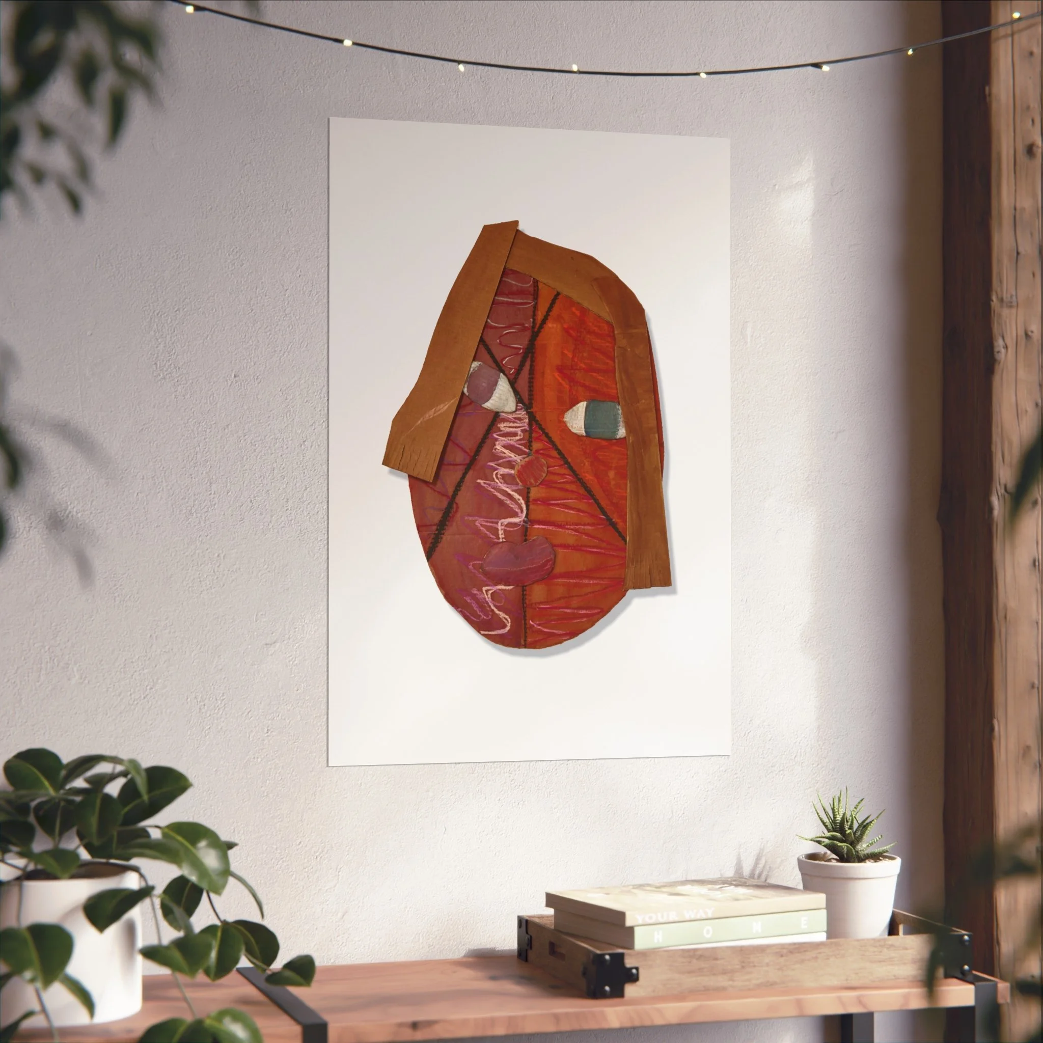 This fine art poster brings a warm, tactile collage into your space. Rich autumnal hues and layered paper textures form an abstract portrait that feels handcrafted and quietly intimate. The smooth matte surface emphasizes depth and brush-like marks, while the gallery-grade 220gsm paper gives each print a substantial, archival presence. Hung alone or as part of a curated wall, it adds a contemplative, modern-art energy — the kind that invites a closer look and sparks conversation in a living room, studio, or reading nook.
