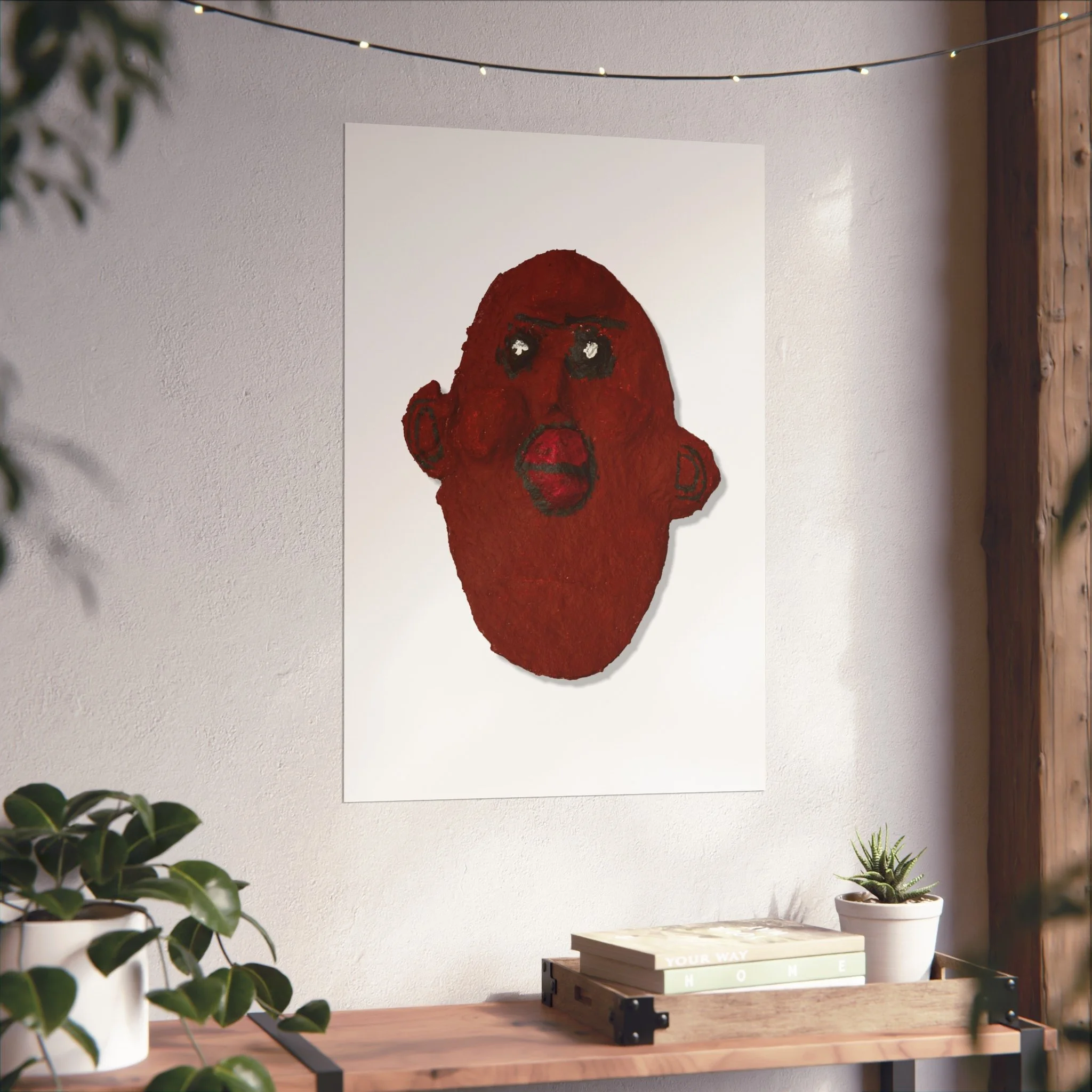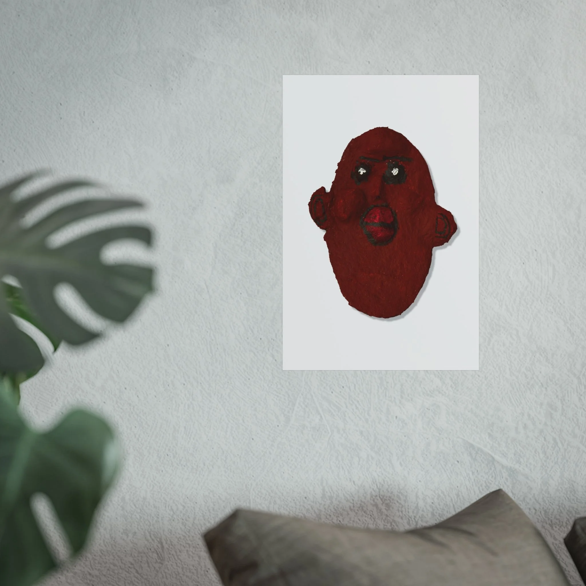 A striking fine art poster that brings raw, tactile expression into any room. The image—a textured, sculptural face rendered in deep russet tones—holds a quiet, slightly uncanny presence that draws the eye and invites conversation. Printed as a giclée on smooth, gallery-grade 220gsm acid-free paper, the matte surface keeps colors rich without glare, preserving subtle texture and shadow. Hung in a living room alcove, creative studio, or hallway, this piece adds a bold, intimate focal point for anyone who collects characterful, unconventional art. The restrained white margin lets the artwork breathe and complements modern, minimalist interiors as well as eclectic, layered spaces.