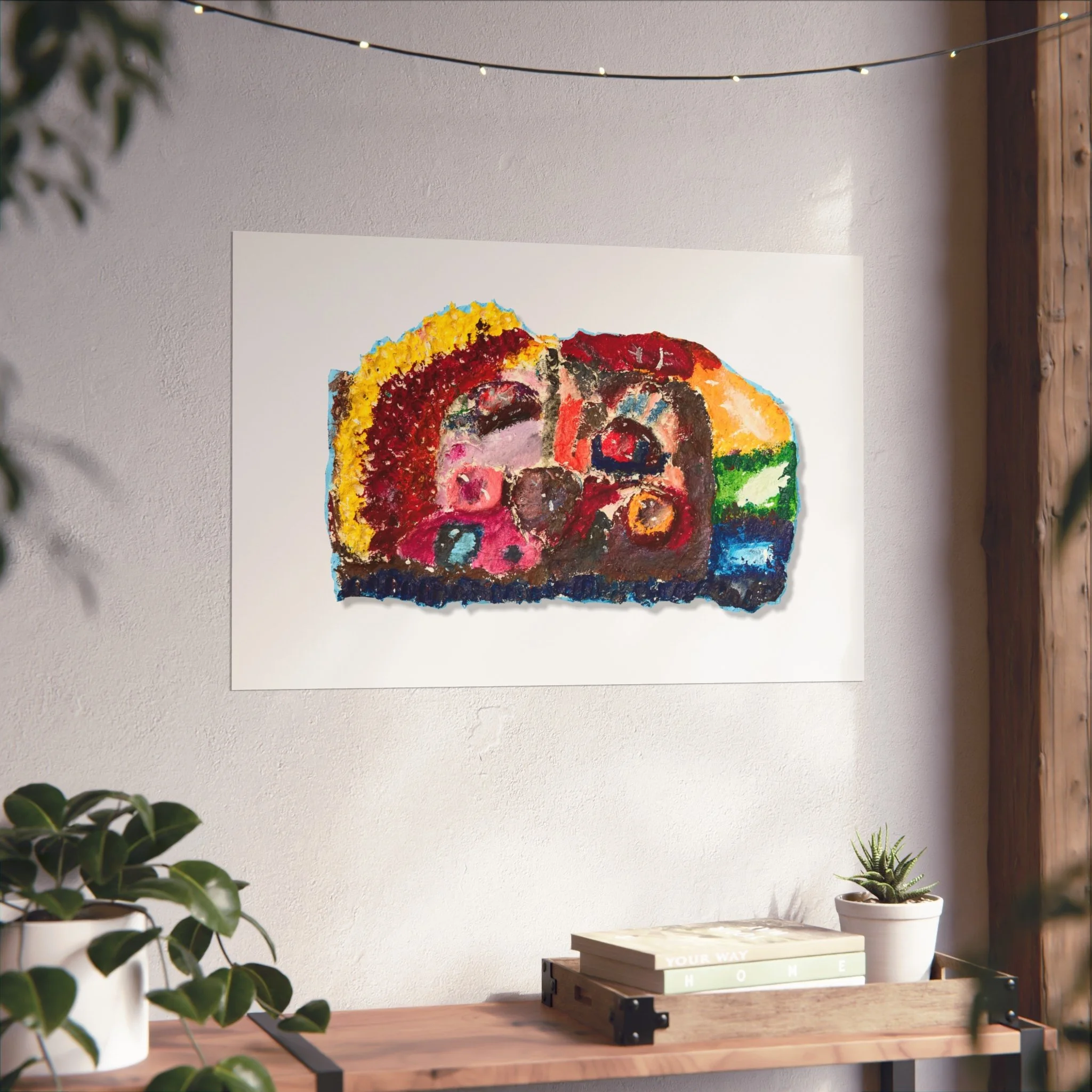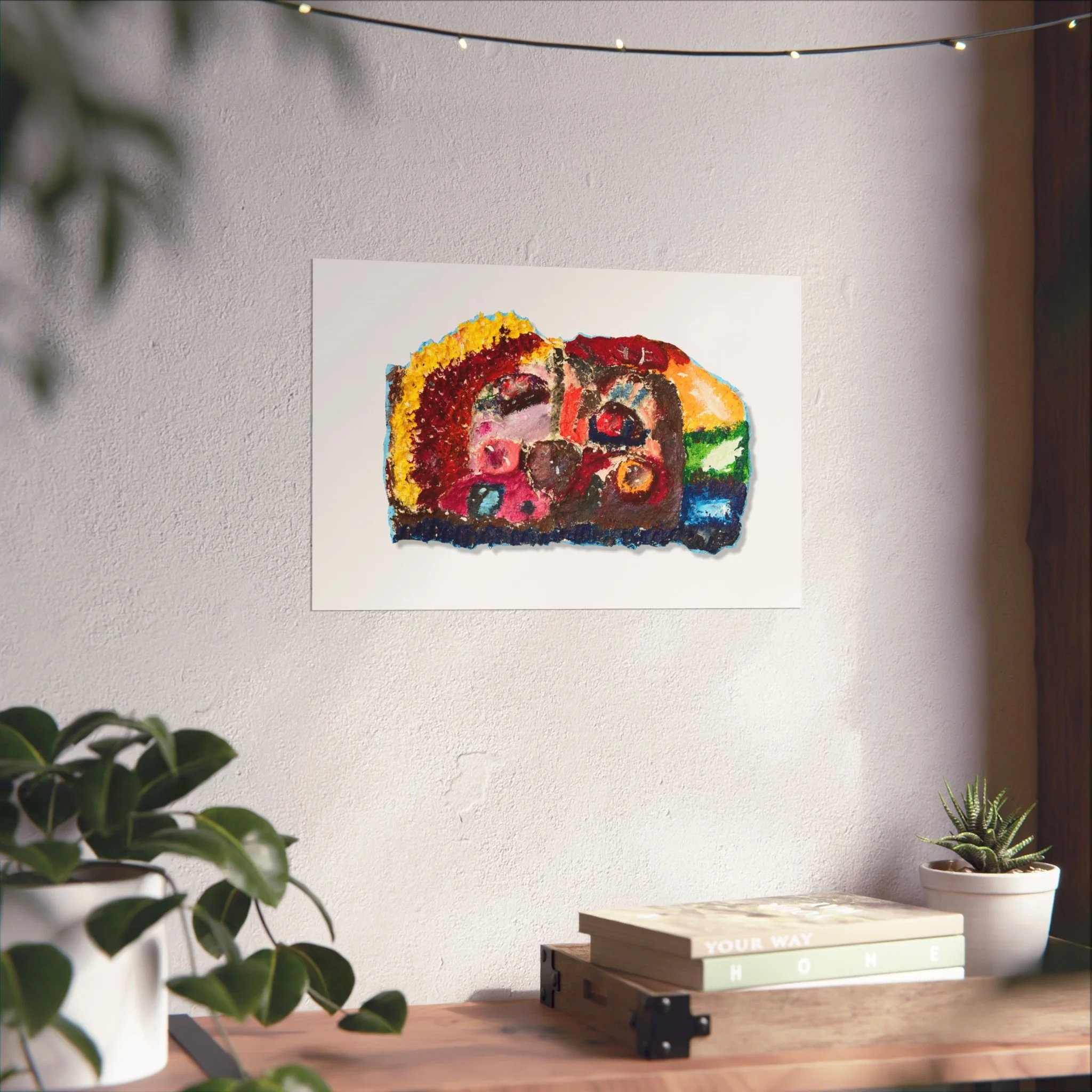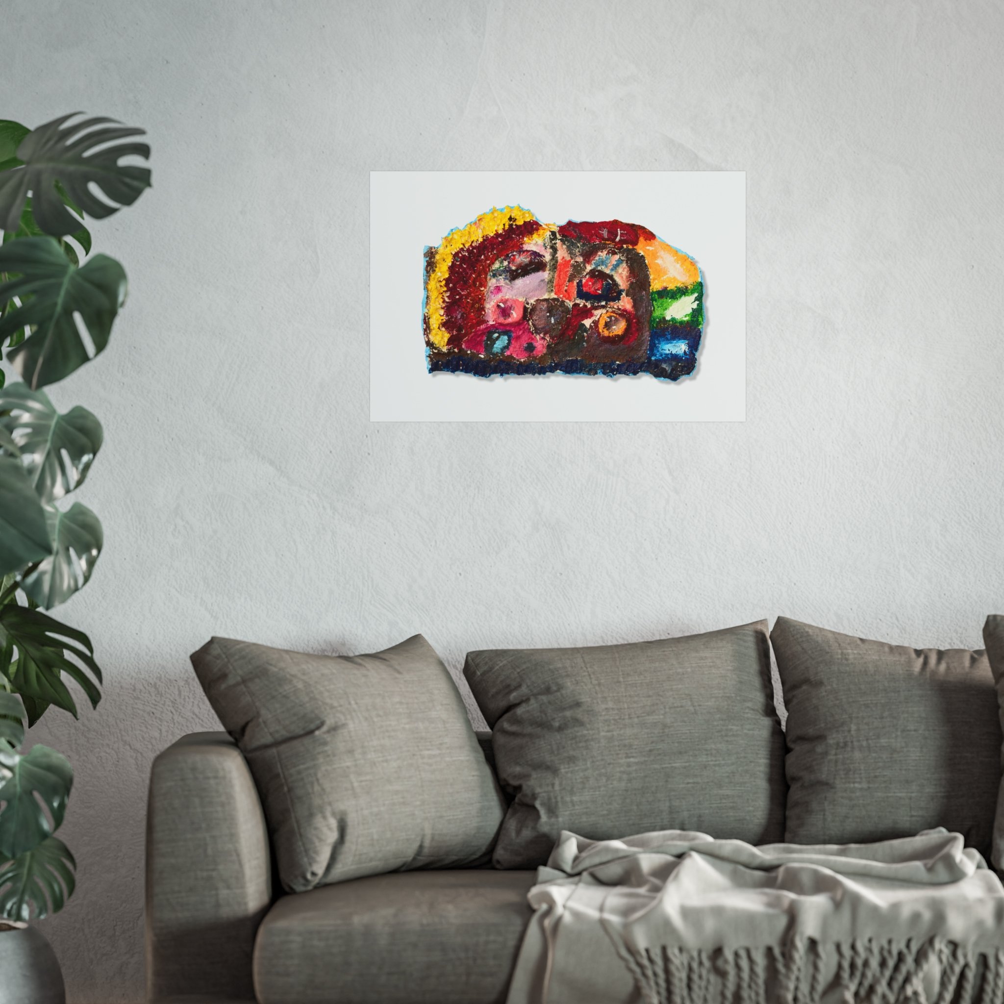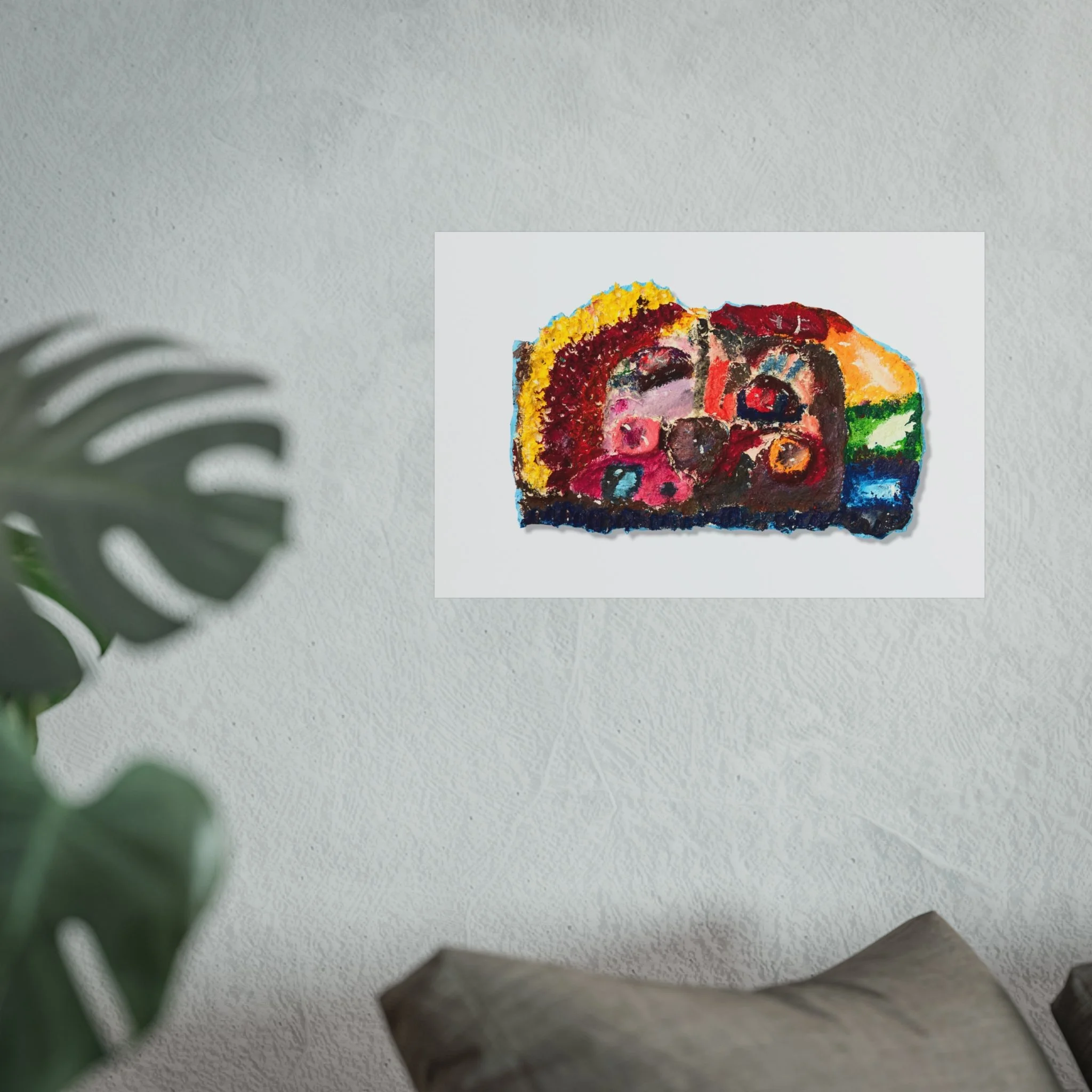 This fine art poster brings a burst of expressive color and texture to any wall. Printed on gallery-grade 220gsm acid-free paper with giclée-quality REACH-certified inks, the artwork’s rich pigments and matte finish retain depth without glare. The abstract composition—vibrant reds, sunny yellows, deep blues and greens—feels hand-applied, like a small, intense painting captured on paper. It hangs quietly in living rooms, studios, or reading nooks, adding warmth and an artistic focal point that invites a second look. Available in horizontal, vertical, and square formats across multiple sizes, the print is produced using EUTR-compliant materials sourced from the United Kingdom.