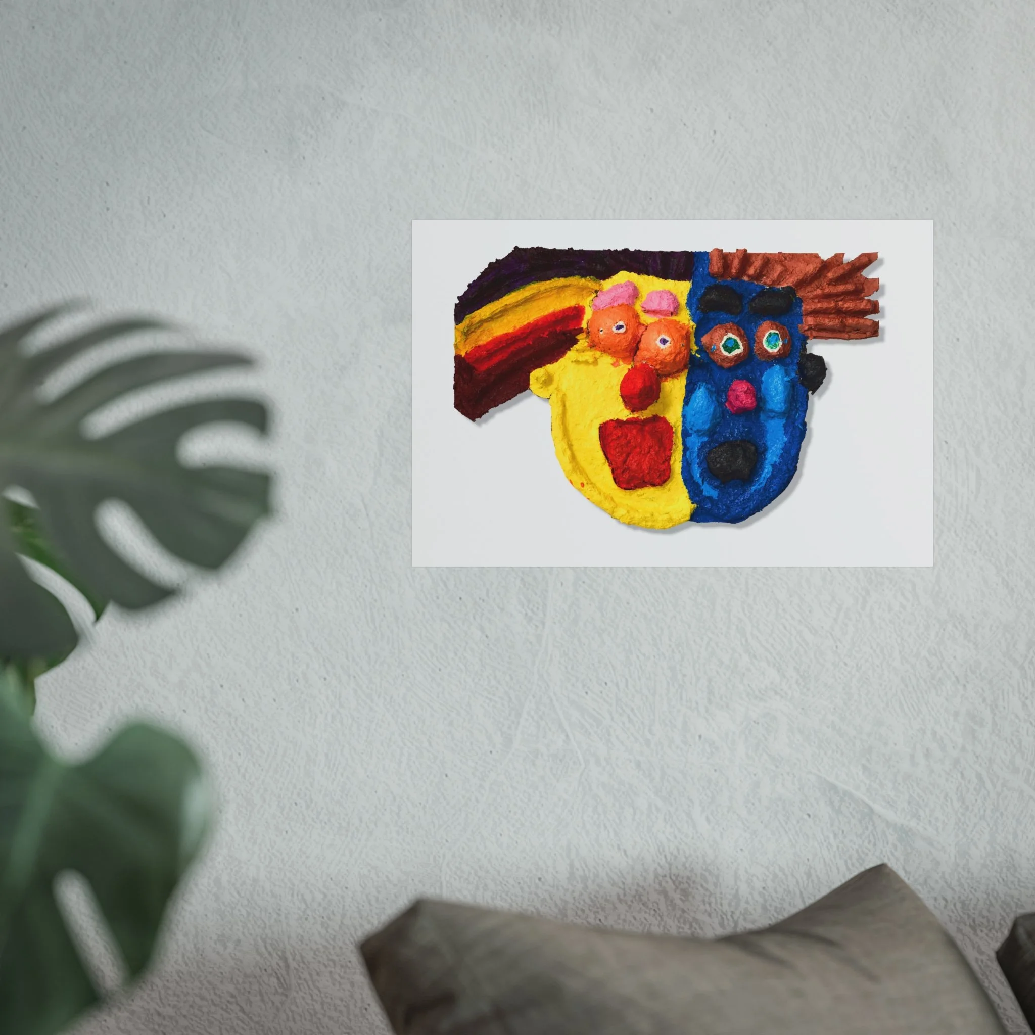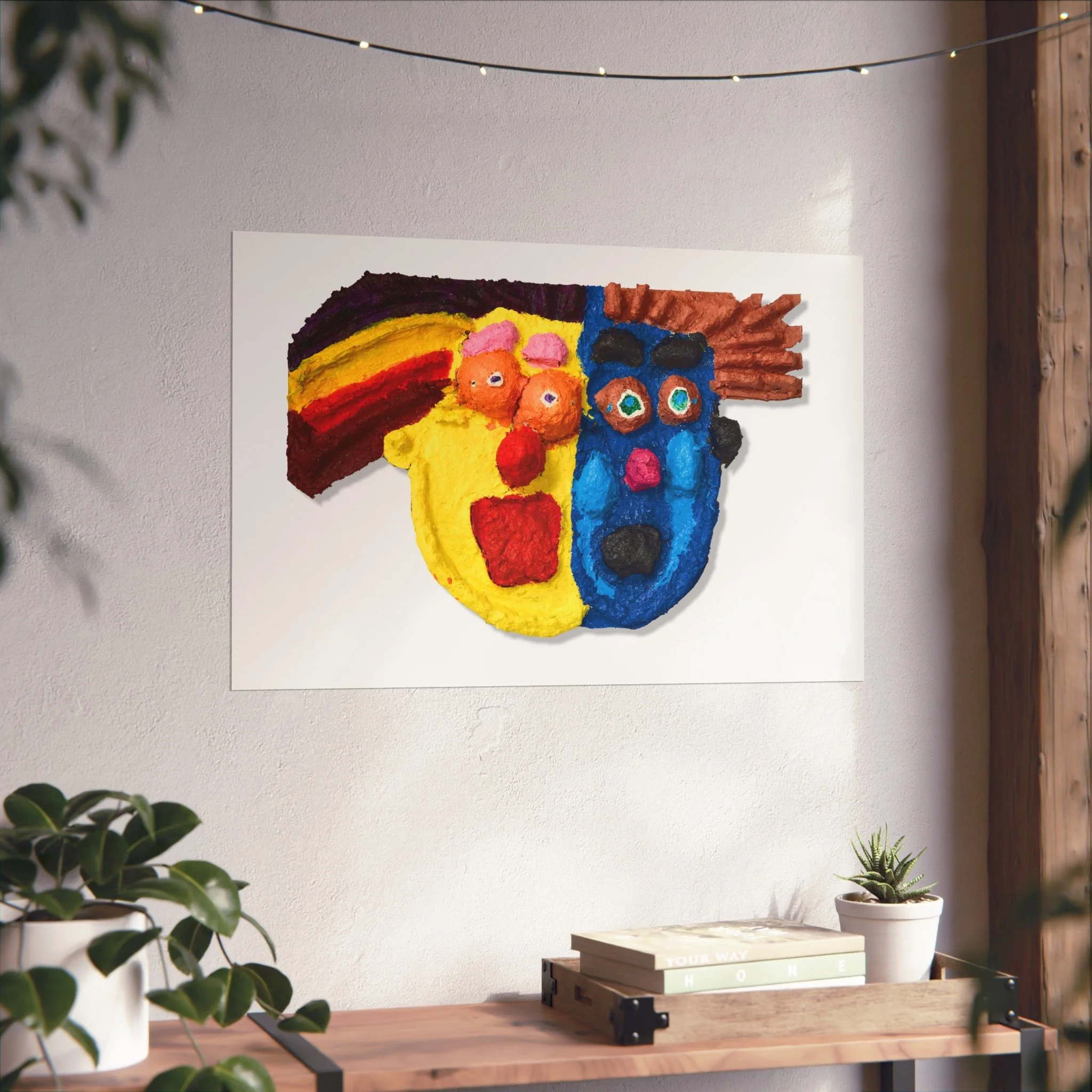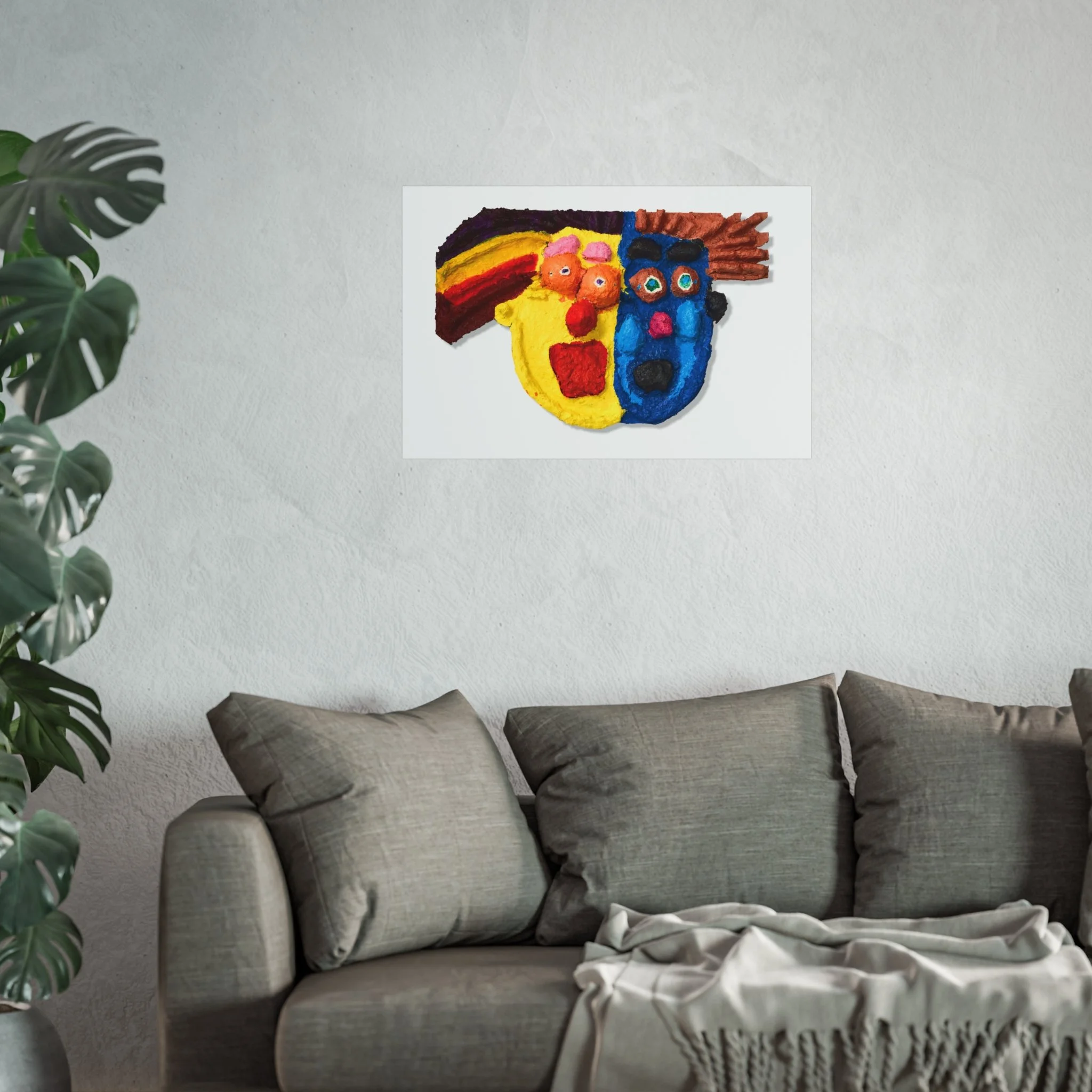 Hand-printed on smooth, gallery-grade 220gsm fine art paper, this giclée poster brings a playful, textured artwork into your space with vivid, REACH-certified inks and a soft matte finish. The design’s bold, split-face composition—warm yellow tones meeting cool blues with pops of coral and umber—feels like a cheerful, slightly surreal conversation on your wall. It settles easily into creative nooks, studio corners, or living rooms where color and curiosity are welcome. Available in horizontal, vertical, and square formats and multiple sizes, the poster arrives printed on acid-free stock so the colors stay true and the paper stays archival. Sustainably sourced materials and EUTR-compliant woodstock in the production chain mean it’s made with care from the UK to your home.