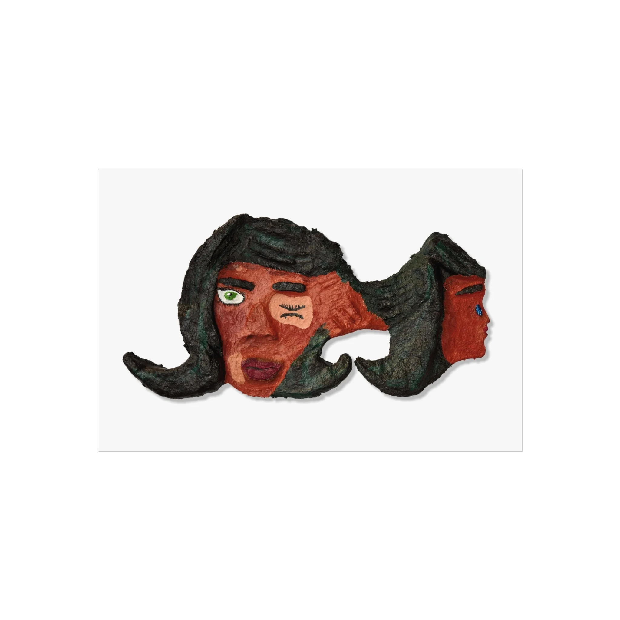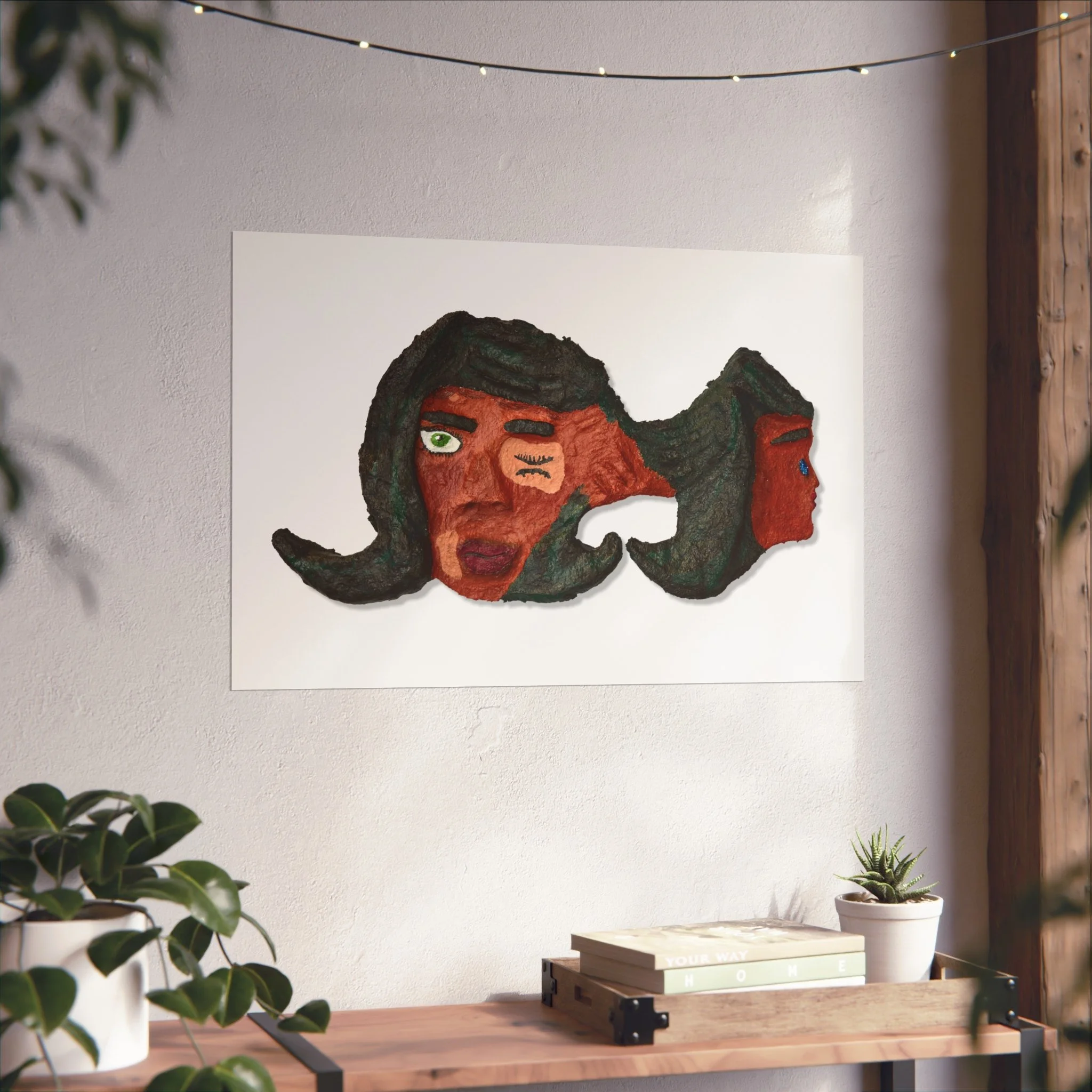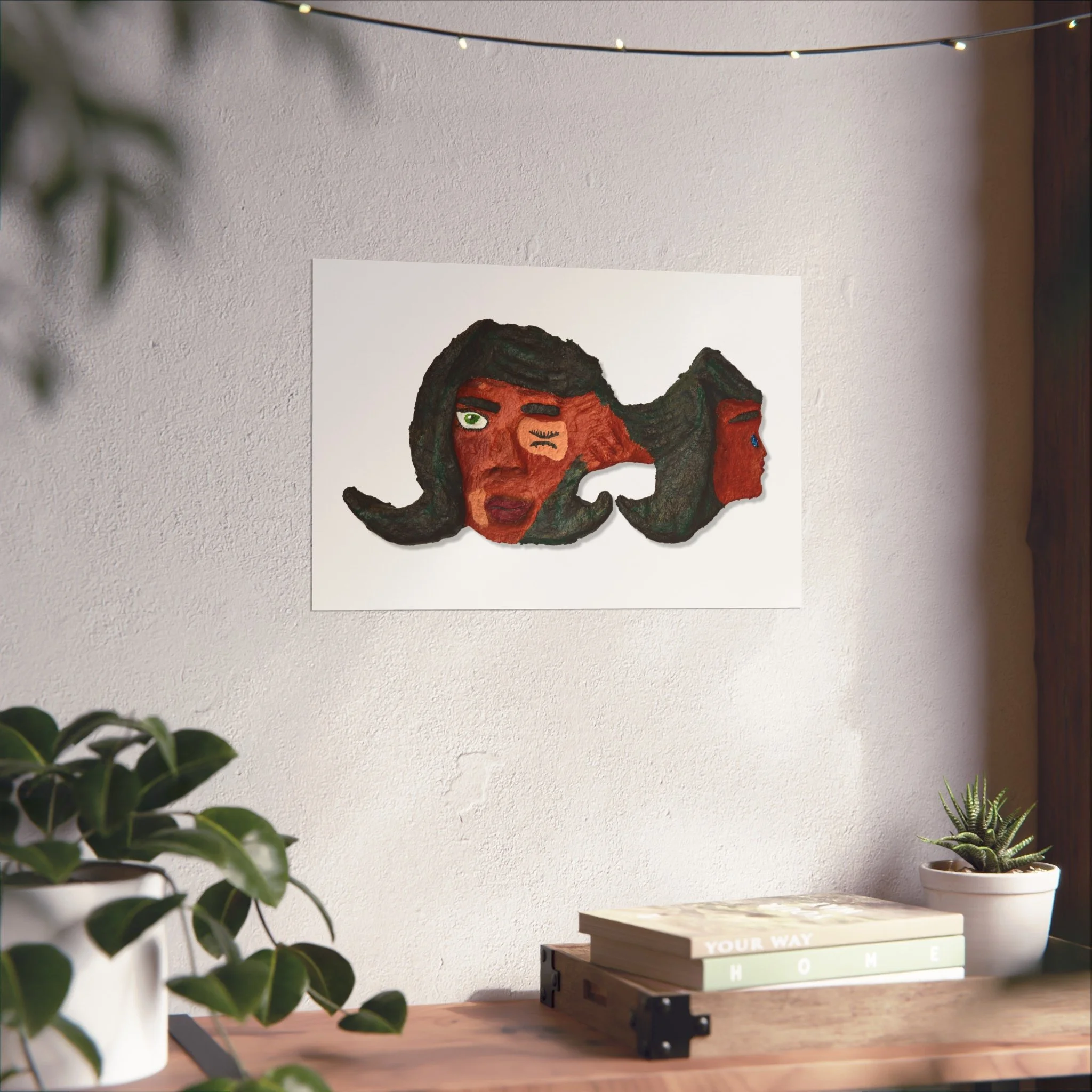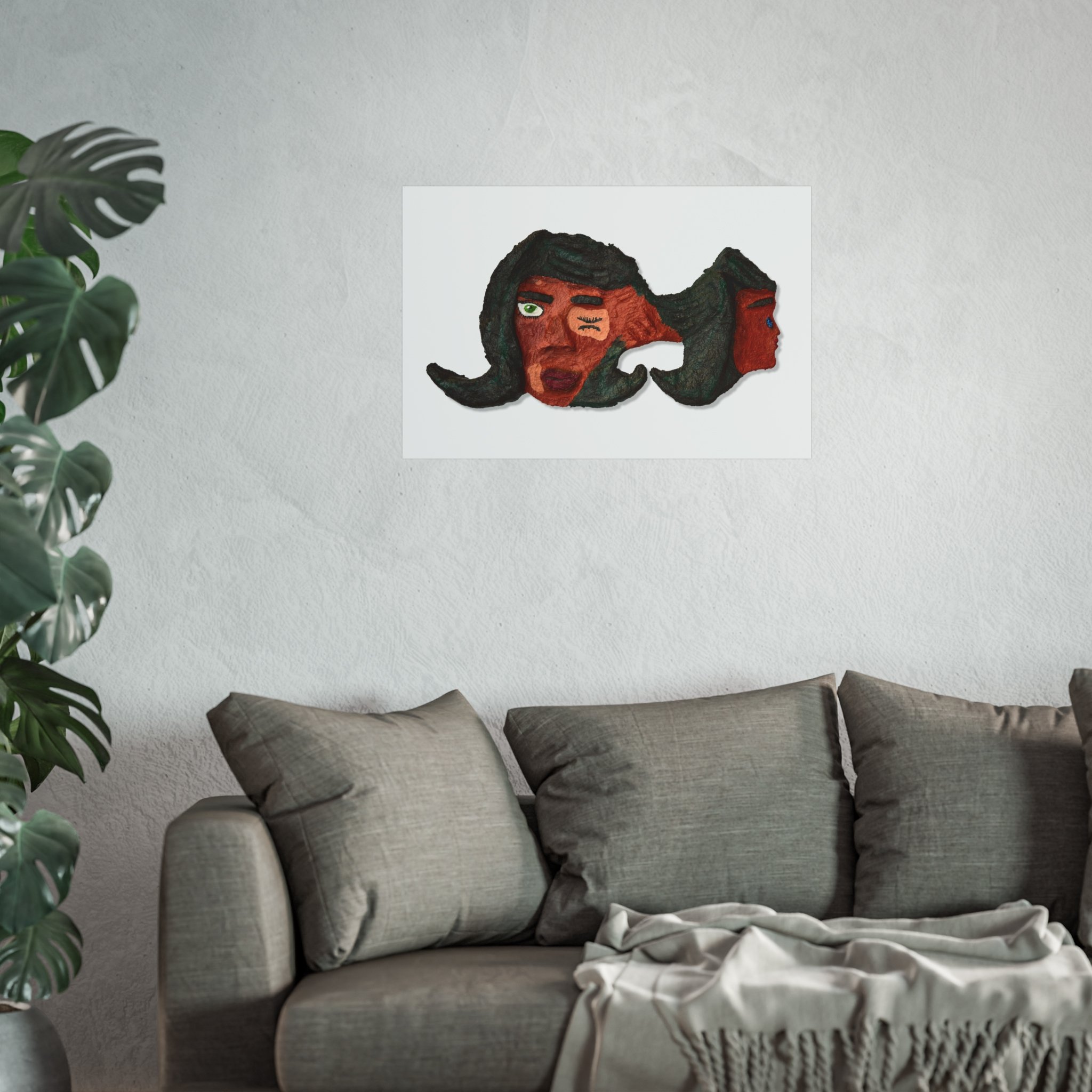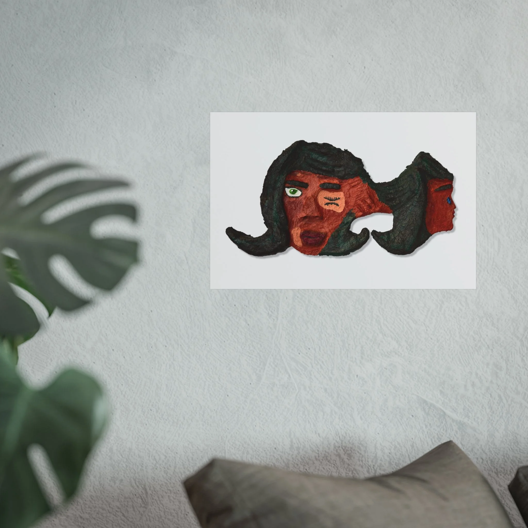 This fine art poster captures a raw, expressive face rendered in earthy reds and deep greens — a piece that feels like a quiet conversation on the wall. The textured, hand-made look of the artwork reads as both vulnerable and bold. Hung above a sofa or in a small gallery nook, it brings warmth and character to a room without shouting. It suits someone who collects emotive, outsider art and wants wall art that sparks reflection and conversation. The smooth matte finish and giclée print preserve the painting’s subtle details and brush textures, while gallery-grade paper gives the image a tactile presence that complements vintage frames or minimalist mounts.