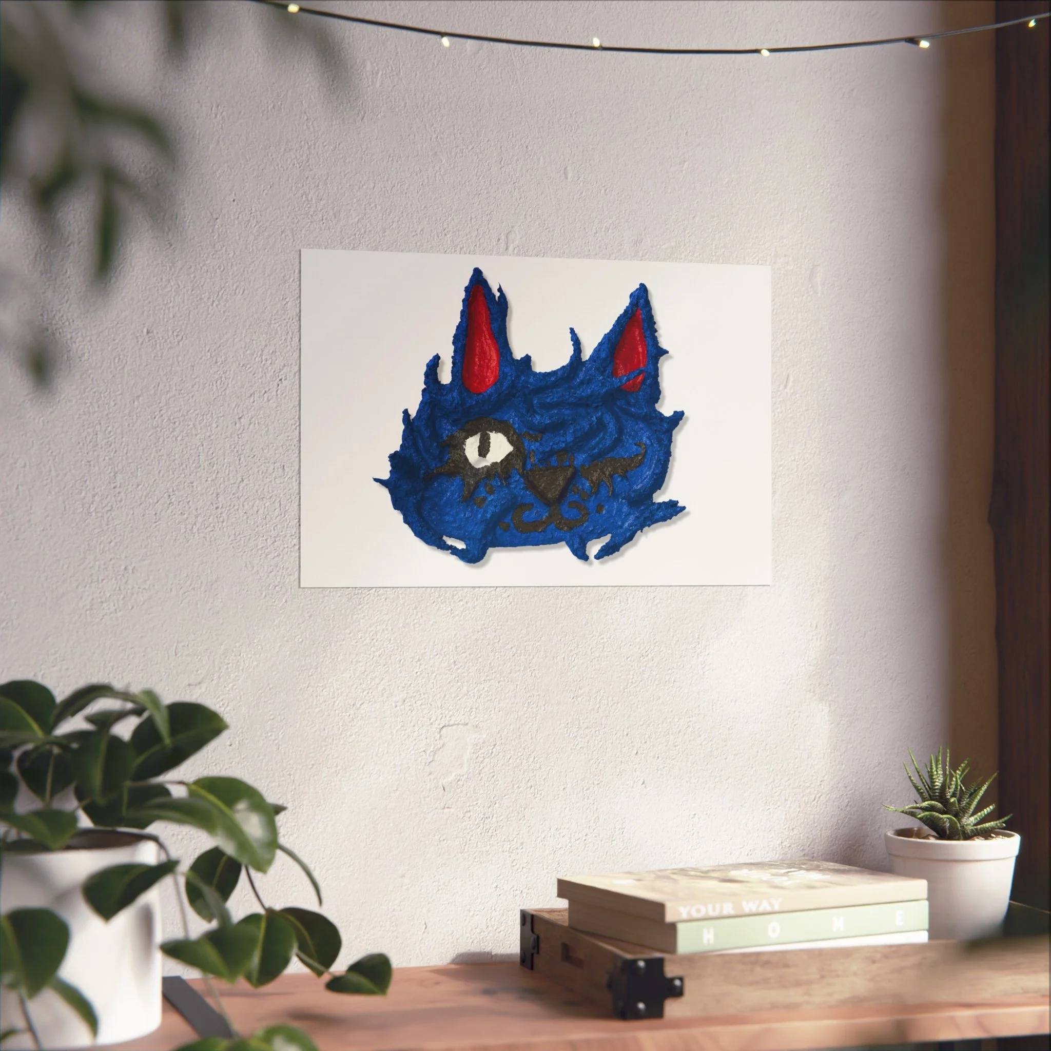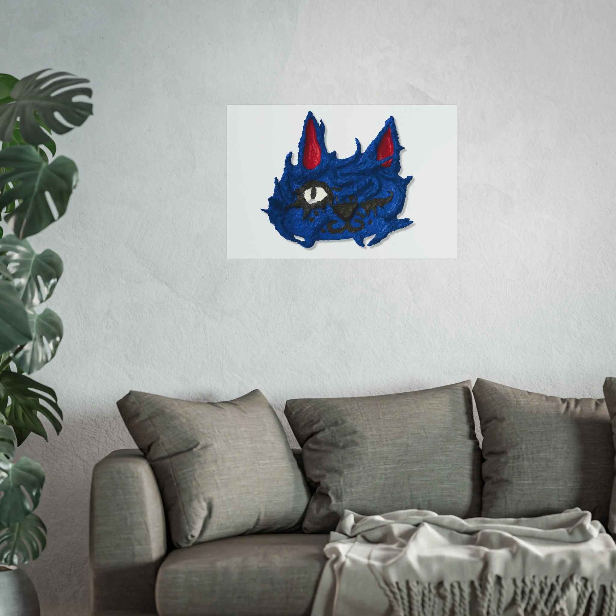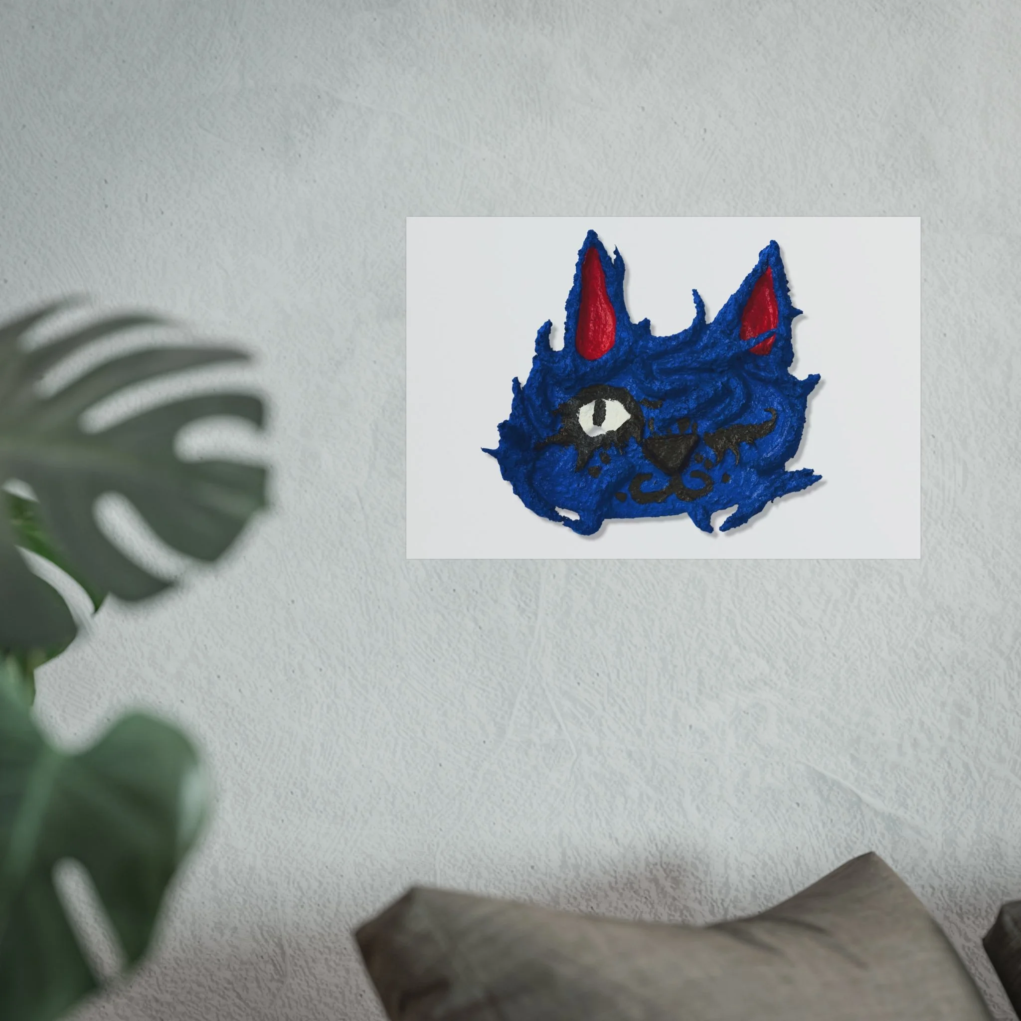 This gallery-quality fine art poster brings a hand-crafted, slightly wild spirit into any room. The deep, painterly blue cat—one eye open, one eye playfully closed—has a textured, tactile look that reads like a small, treasured sketch brought to life. Printed with giclée precision on smooth, acid-free 220gsm paper, the matte surface keeps glare low and details crisp. It hangs easily in horizontal, vertical, or square displays and slips into frames or stands on its own as a bold, intimate focal point. Place it above a reading nook, by a windowsill, or in a compact gallery wall to add a touch of mischievous charm and color.