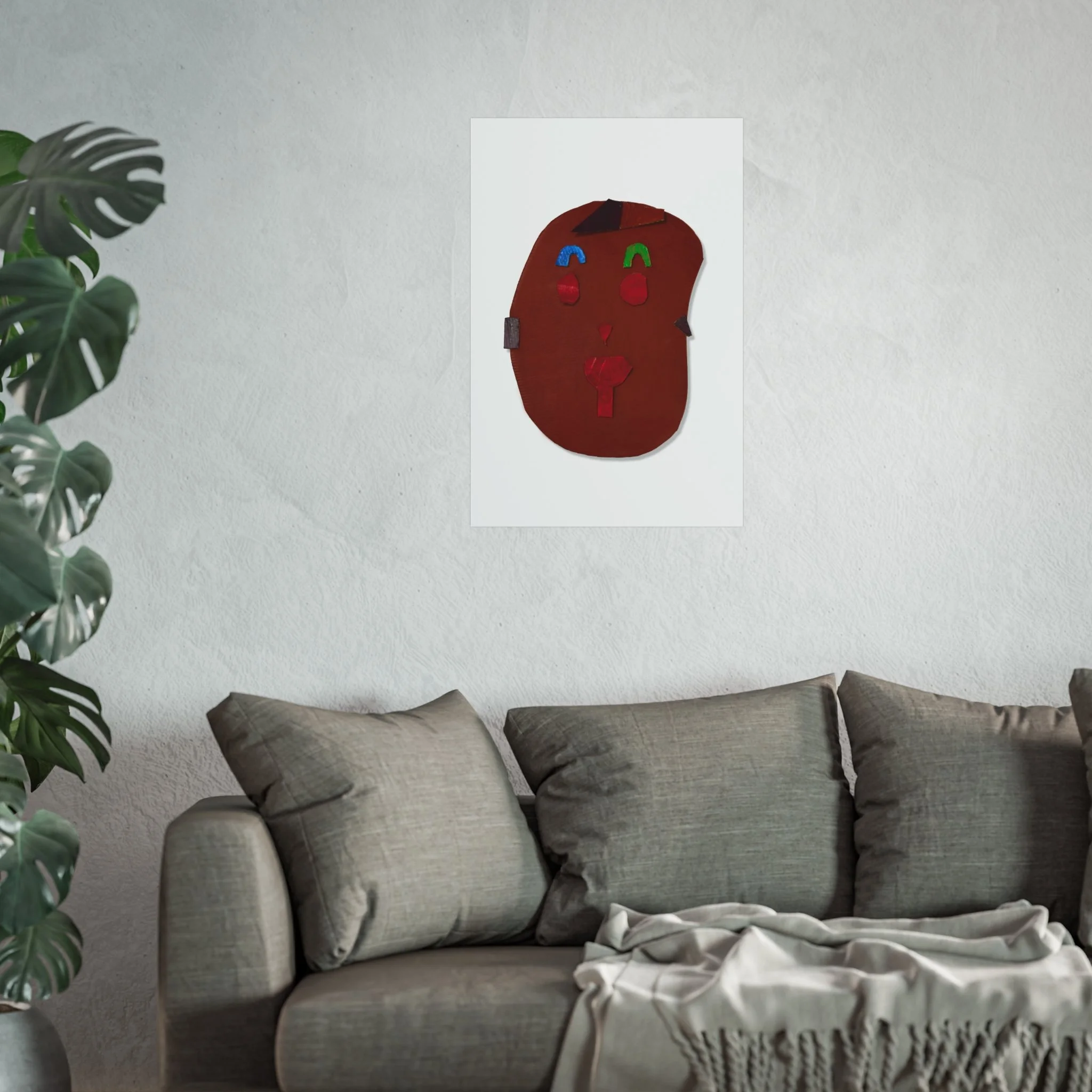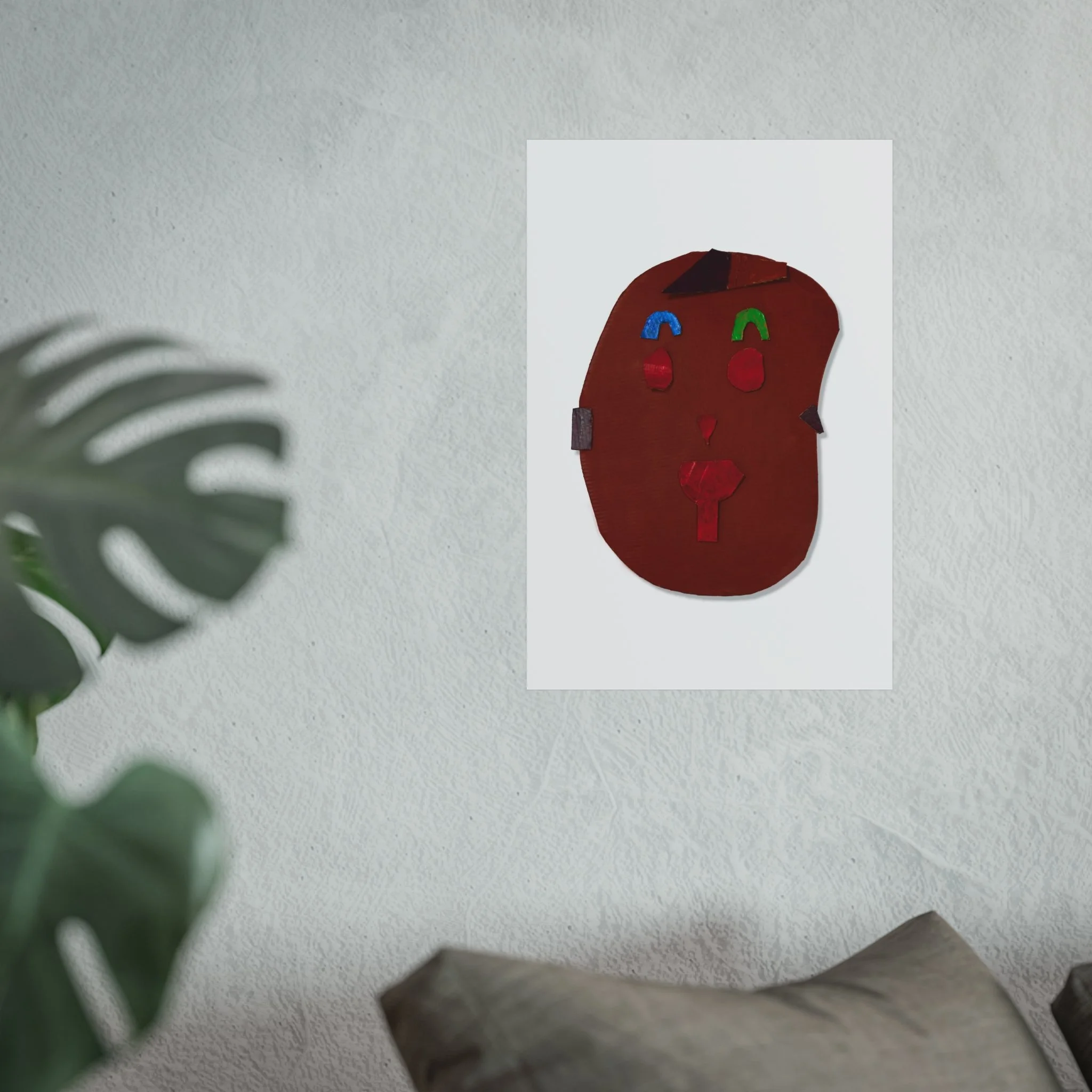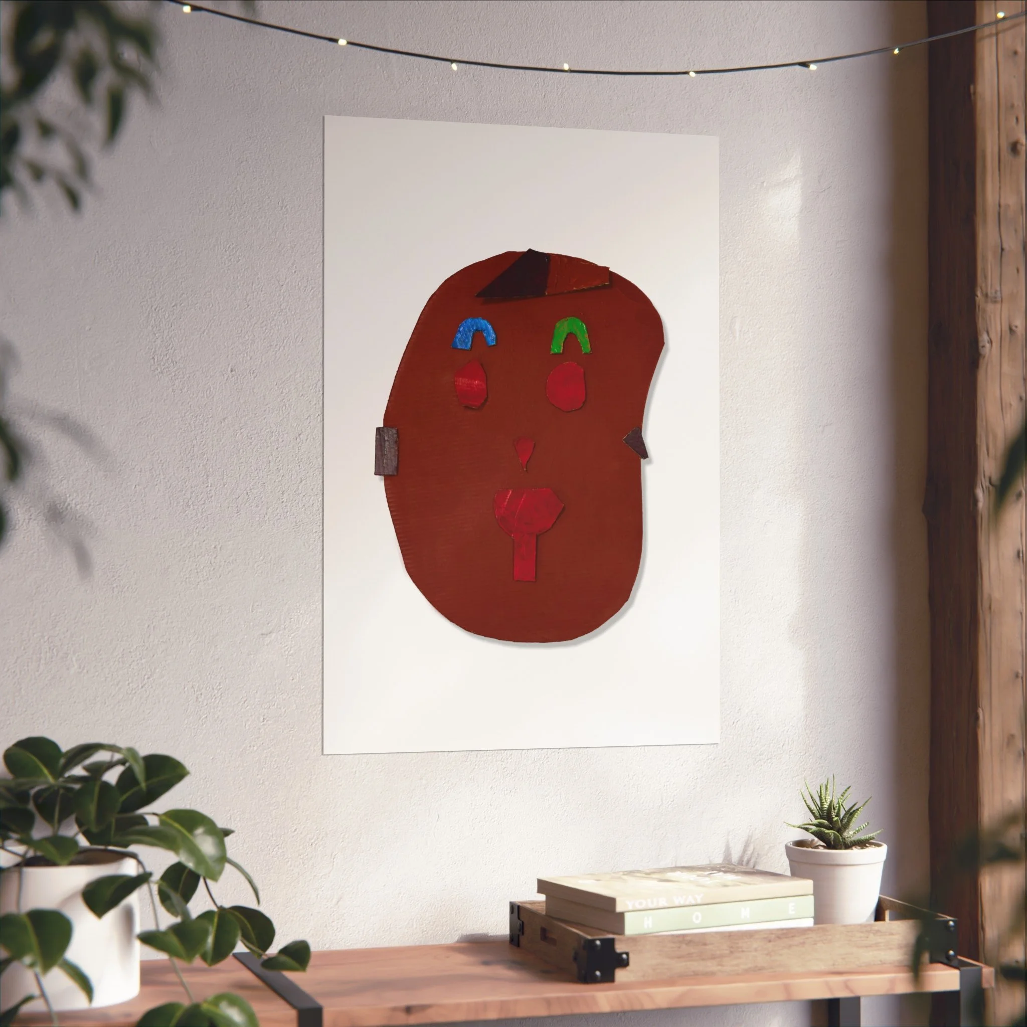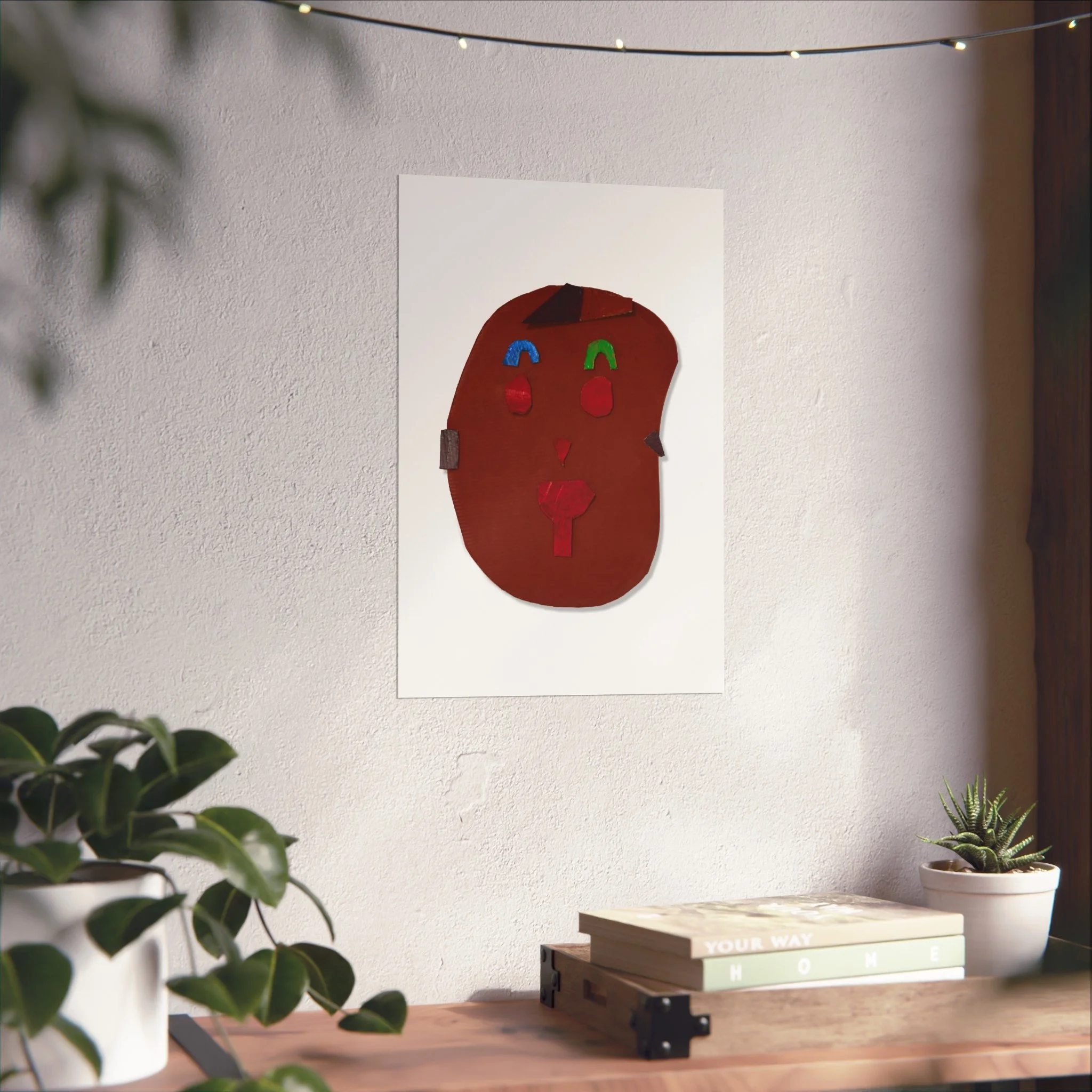 This fine art poster brings a playful, abstract face into your space with warm, earthy tones and small, bright accents. Printed in giclée quality on smooth, gallery-grade 220gsm acid-free paper, the image reads like a modern folk mask—simple shapes, textured color, and a quiet, hand-made charm. It settles easily into a living room wall, studio nook, or hallway, adding a human touch without shouting. Available in horizontal, vertical, and square formats and multiple sizes, the poster sits flat with a matte finish that softens light and reveals subtle color depth. Print responsibly: the materials are sourced from the UK with EUTR-compliant wood elements and REACH-certified inks, so the piece looks and feels like something meant to last.