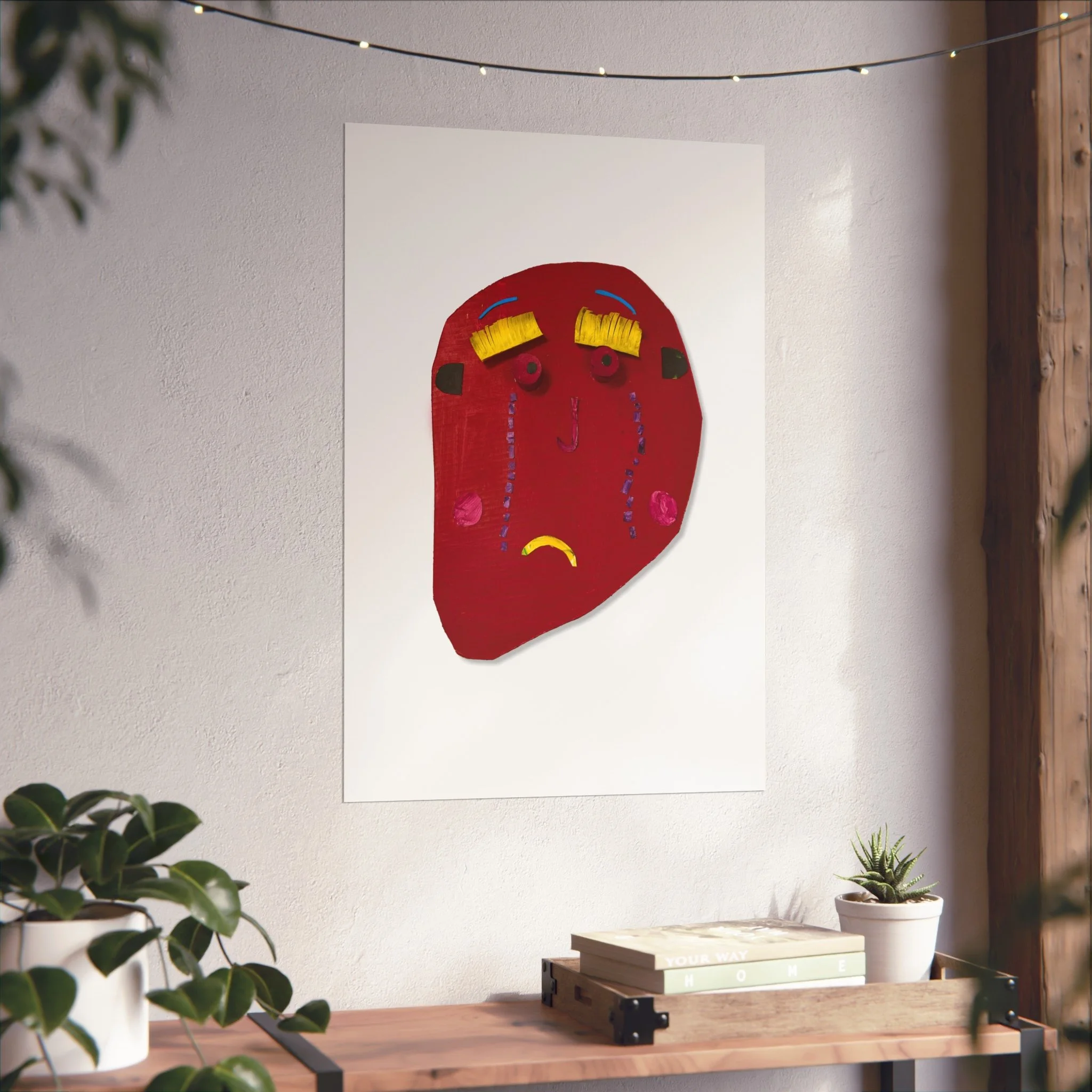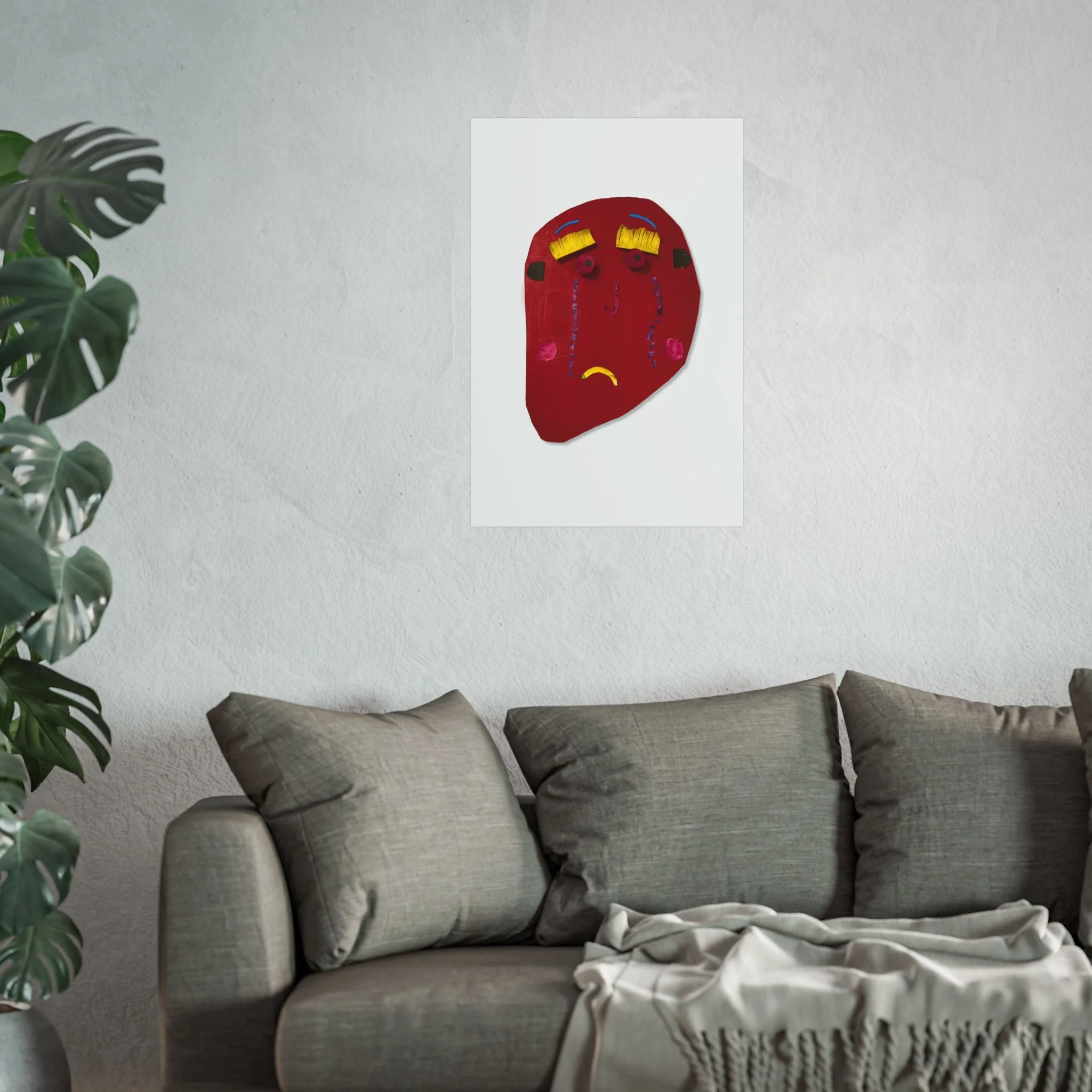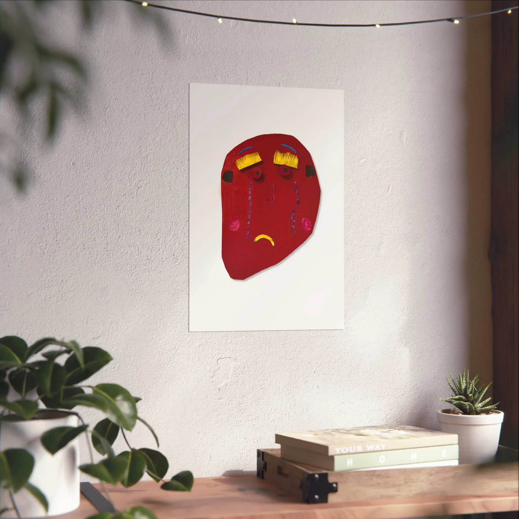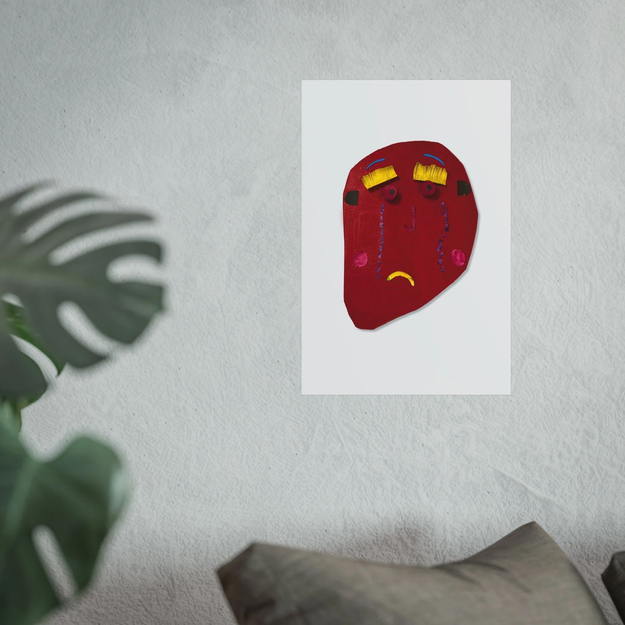 A bold fine art poster that captures a raw, expressive face in deep crimson tones. The minimalist composition centers on an abstract portrait with textured brushstrokes, yellow highlights, and delicate tear-like marks that feel both intimate and poignant. Printed on smooth, gallery-grade 220 gsm paper with a matte finish and giclée-quality inks, this piece brings emotional depth to living rooms, studios, or quiet reading nooks. Available in horizontal, vertical, and square formats and multiple sizes to suit framed or unframed displays. The materials are responsibly sourced — REACH-certified inks and EUTR-compliant wood components underline a careful production process from the UK.