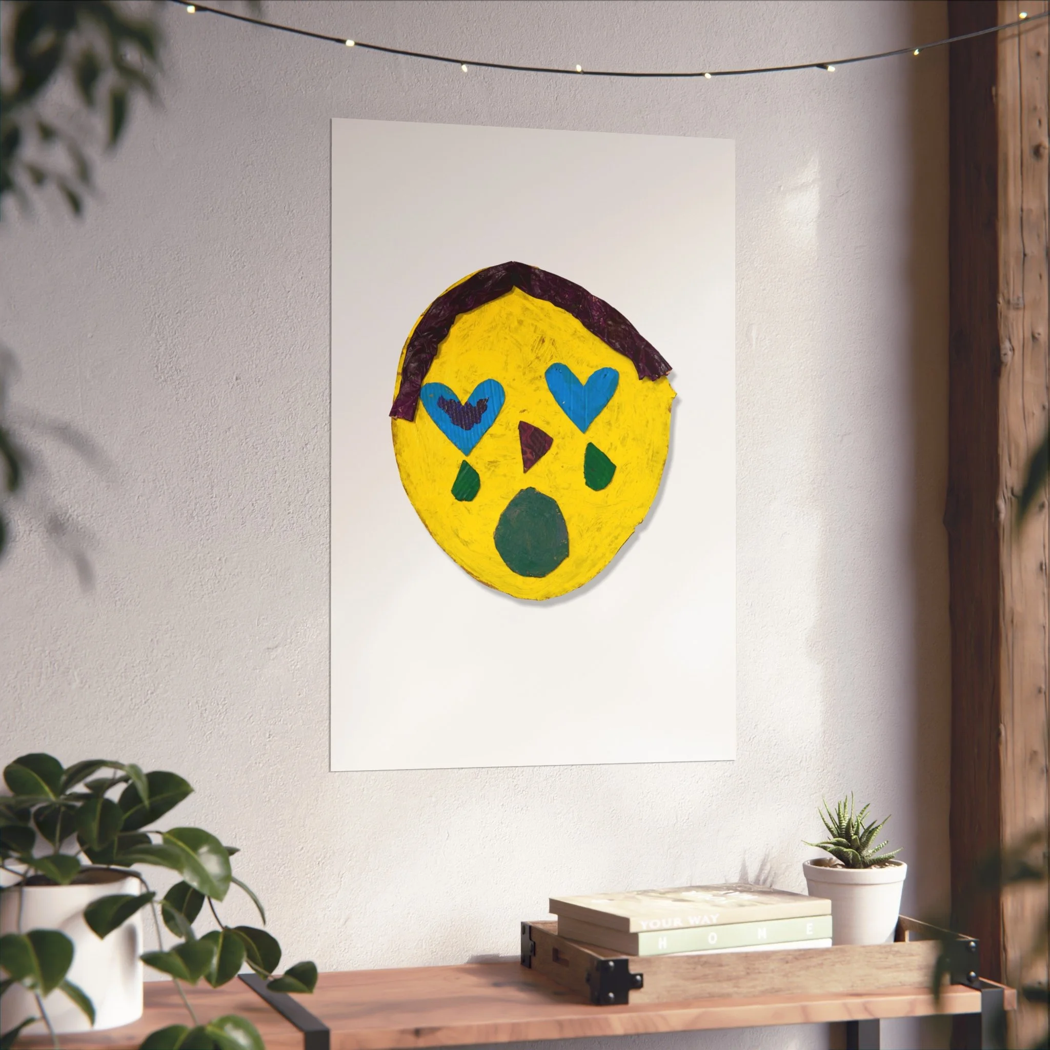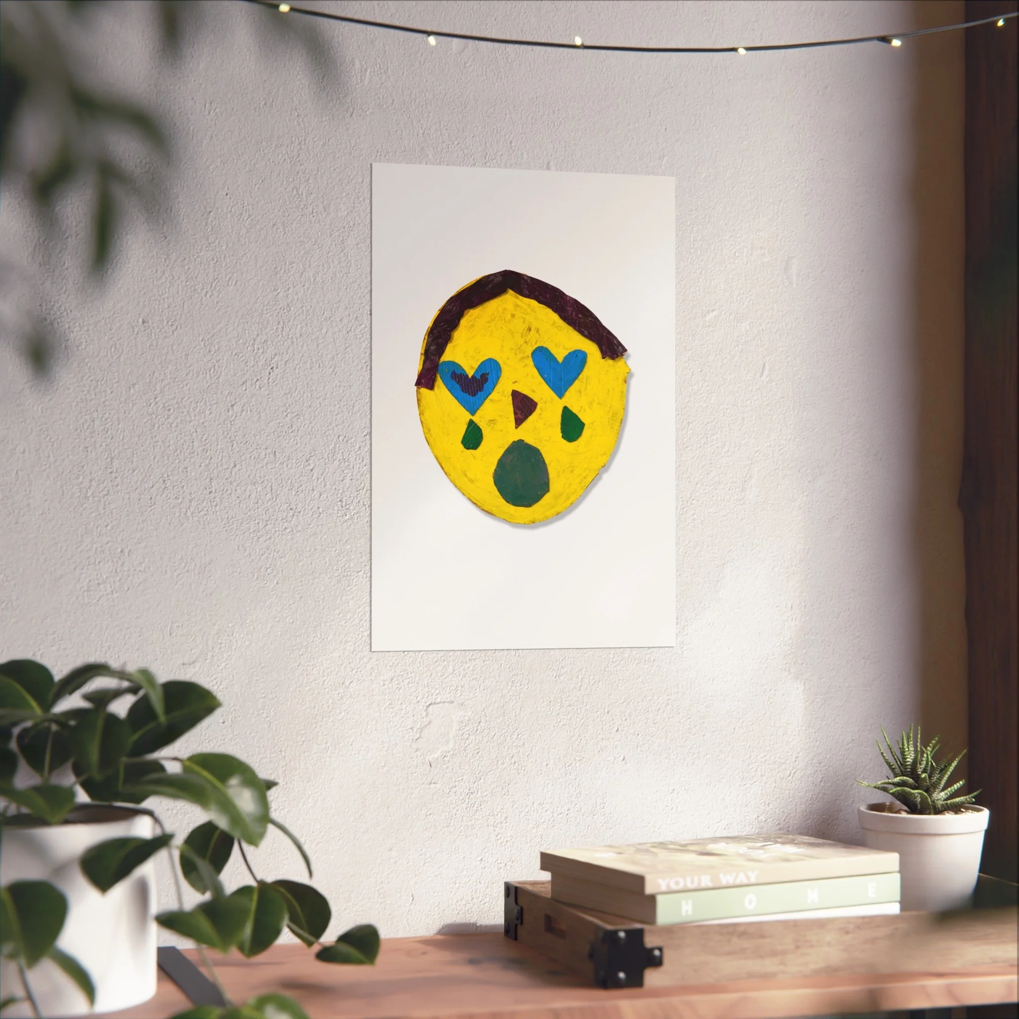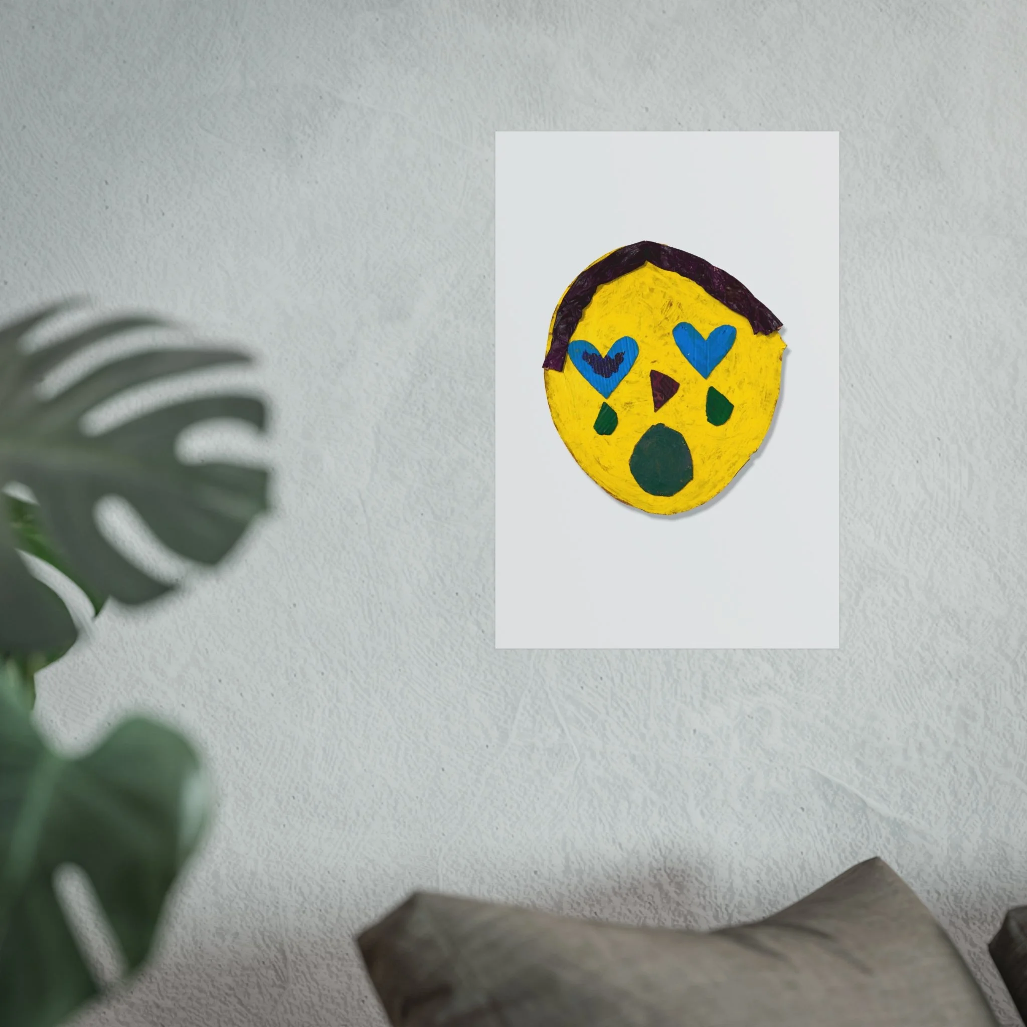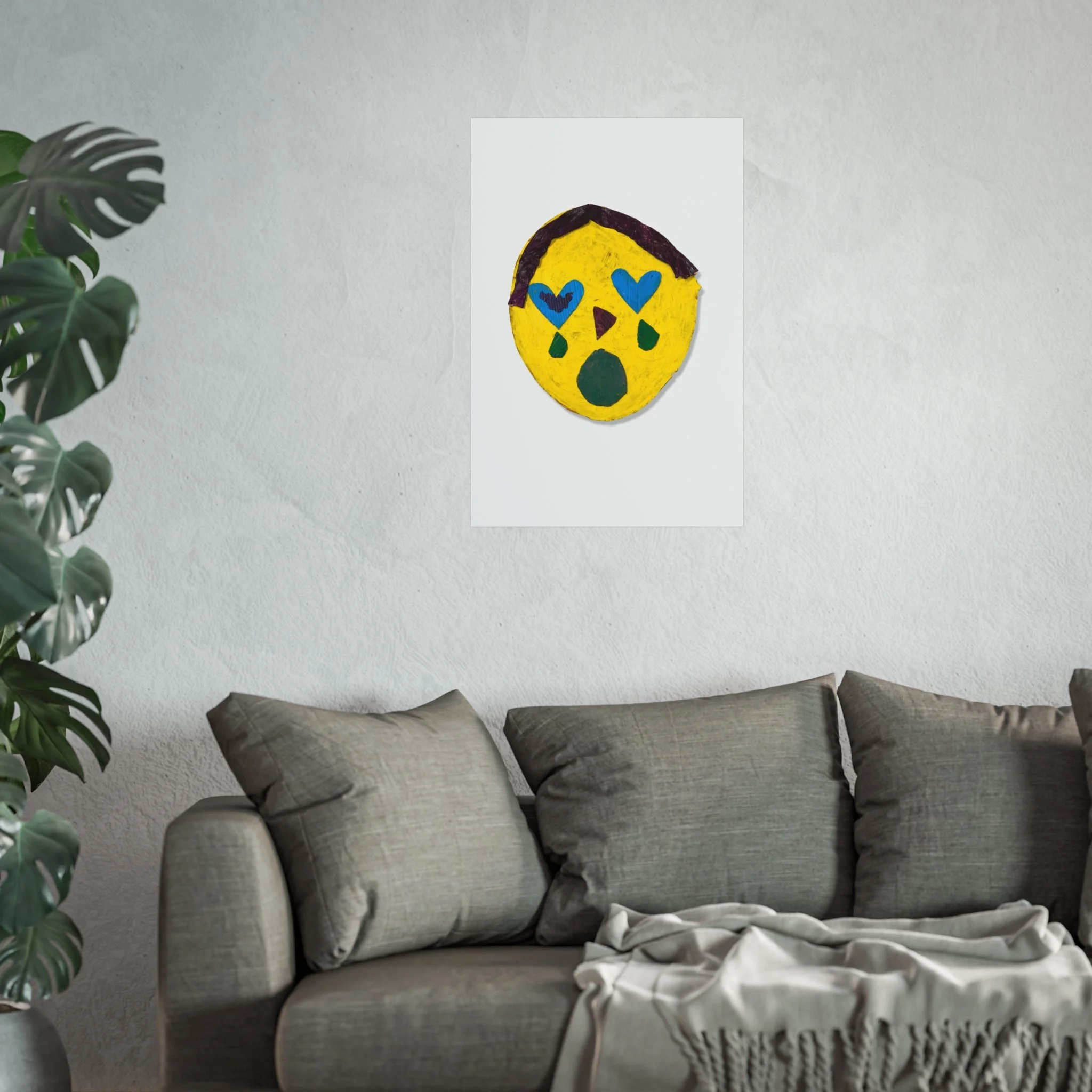 This fine art poster captures a playful, hand-crafted face rendered in bold, primary colors—sunny yellow, teal, deep green and a playful indigo brow. The textured, collage-like look feels like a found artwork from a child’s sketchbook, recomposed into a modern, gallery-ready print. Printed with giclée quality on smooth, acid-free 220gsm paper, the matte finish keeps glare low and the surface beautifully tactile. Hang it in a cozy reading nook, a creative studio, or a child-friendly gallery wall to bring spontaneous warmth and a little laugh to the room. Available in horizontal, vertical, and square formats and multiple sizes to suit shelves, frames, and statement walls.
