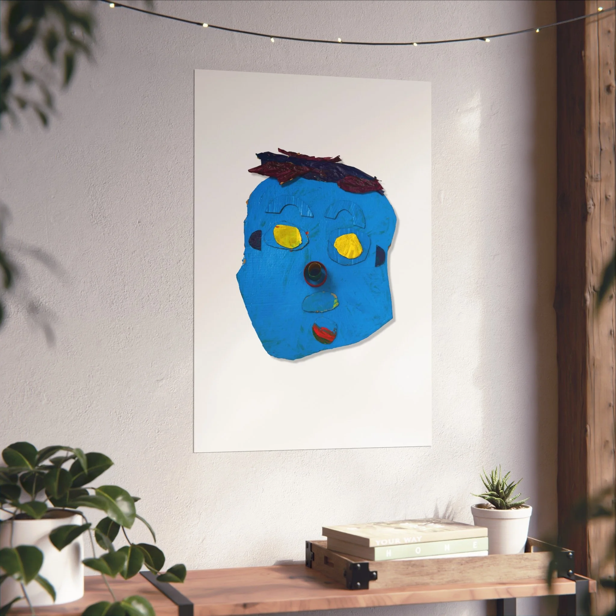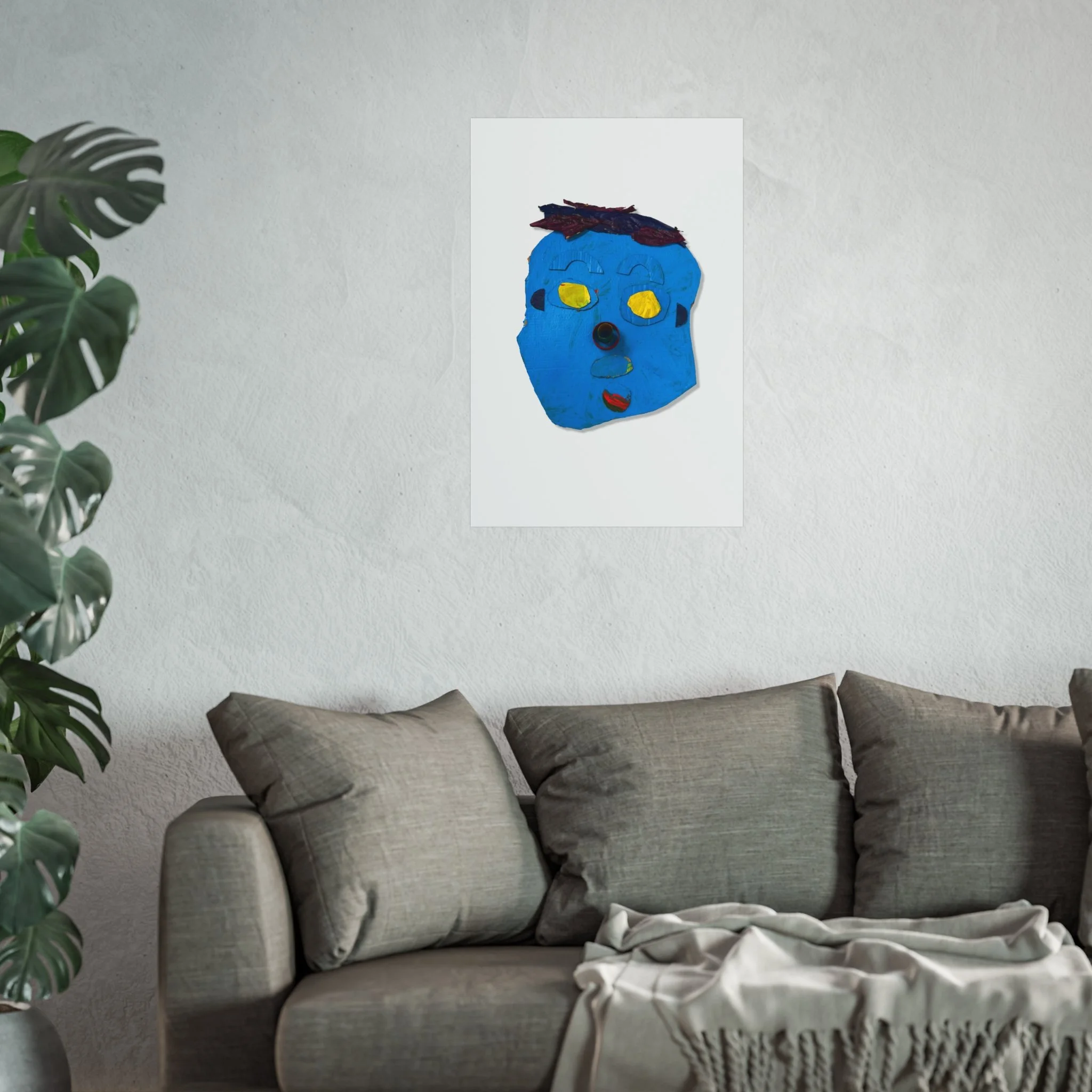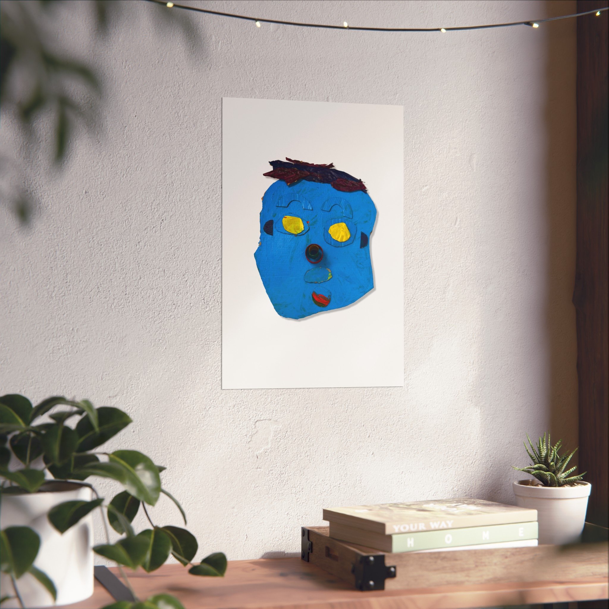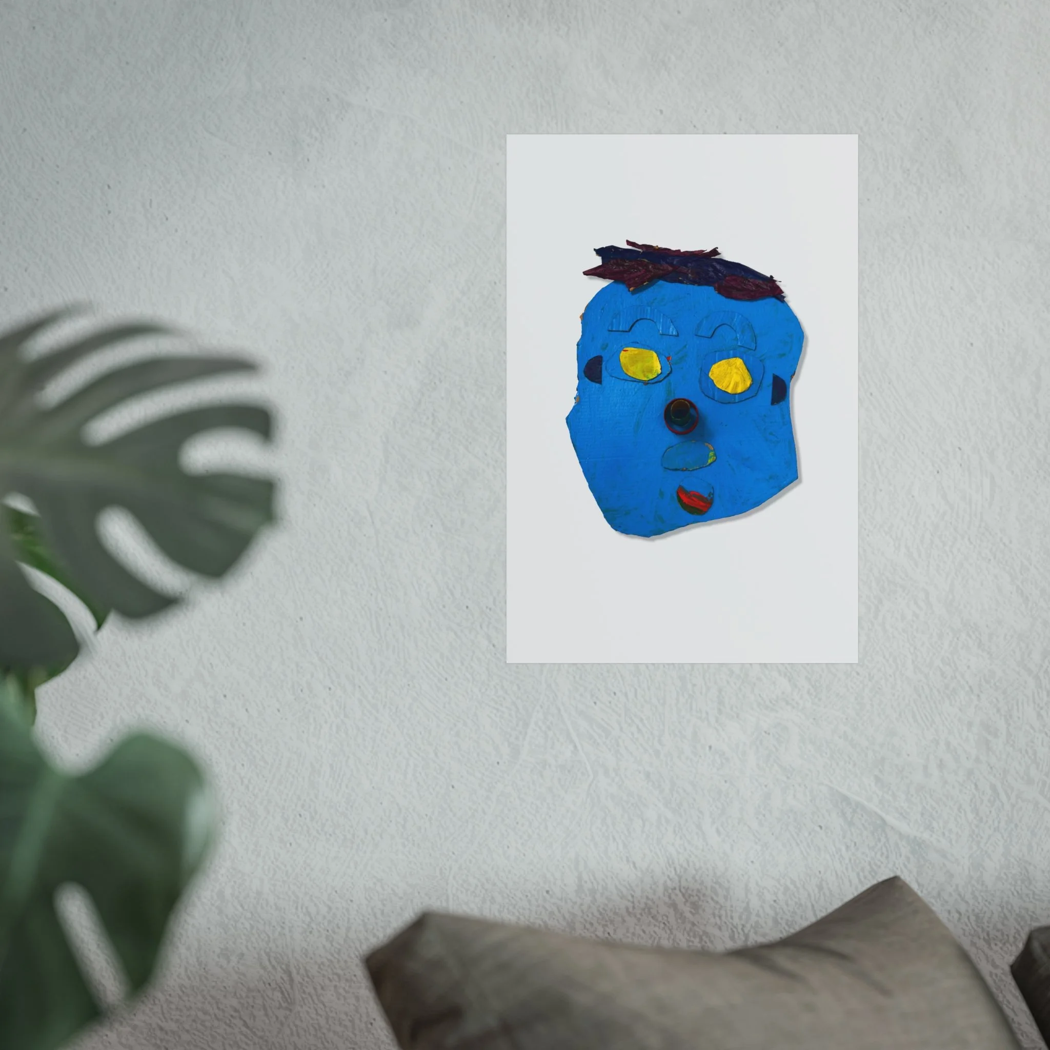 A bright, expressive art poster that brings childlike imagination into grown-up spaces. This giclée print captures a playful blue face—bold shapes, warm yellow eyes, and a textured, handmade feel—laid out on a clean, matte field so the character really pops. It reads like a sketchbook discovery: curious, slightly mischievous, and full of personality. Hang it in a studio, a hallway, or above a cozy nook to add an unexpected joyful note that starts conversations and sparks smiles.