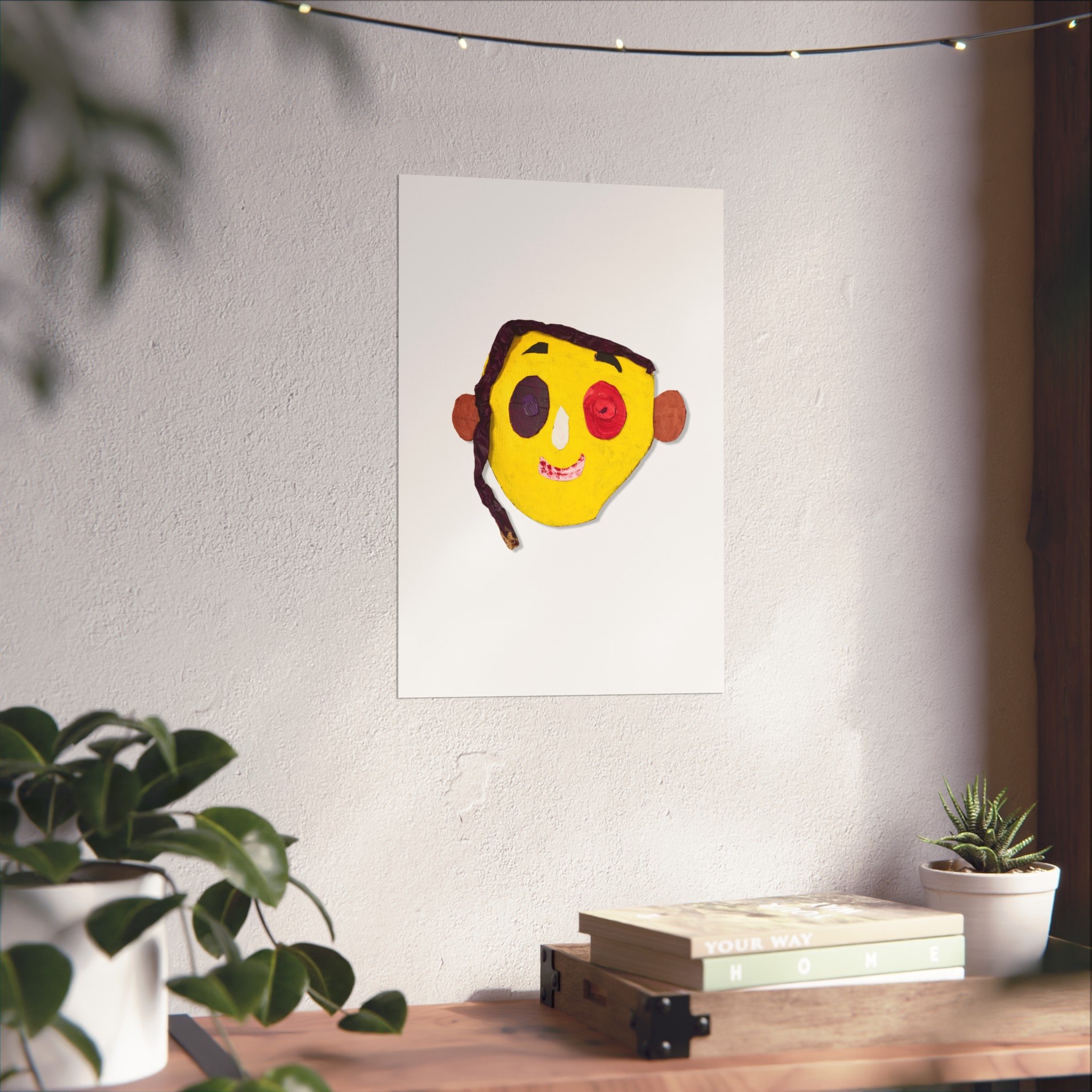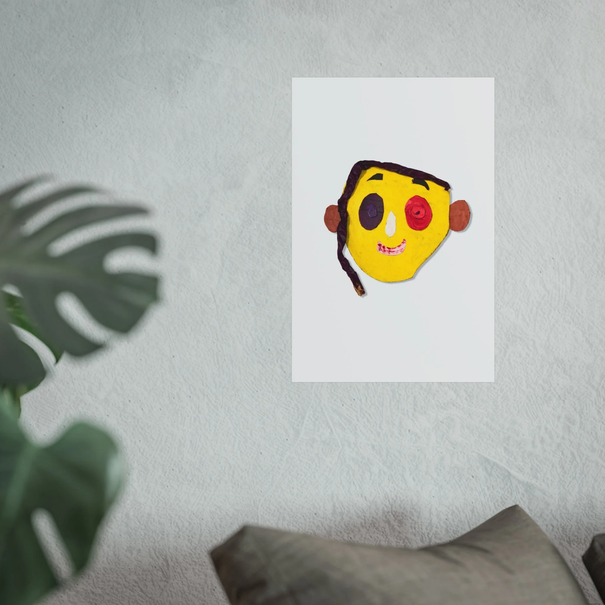 A bright, playful fine art poster that captures naive charm and handcrafted warmth. This giclée-quality print shows a childlike smiling face rendered in bold primary colors and textured strokes — a little off-kilter, joyful, and distinctly human. Printed on smooth, acid-free 220gsm gallery paper with a matte finish and REACH-certified inks, the image holds rich color and fine detail without glare. Available in horizontal, vertical, and square formats and multiple sizes, it slips easily into casual living spaces, creative studios, nurseries, or gallery walls where personality matters. The responsible materials (EUTR-compliant woodstock sourcing for framing components and UK-sourced blanks) make it a thoughtful addition for anyone who values handmade aesthetics and sustainable production.
