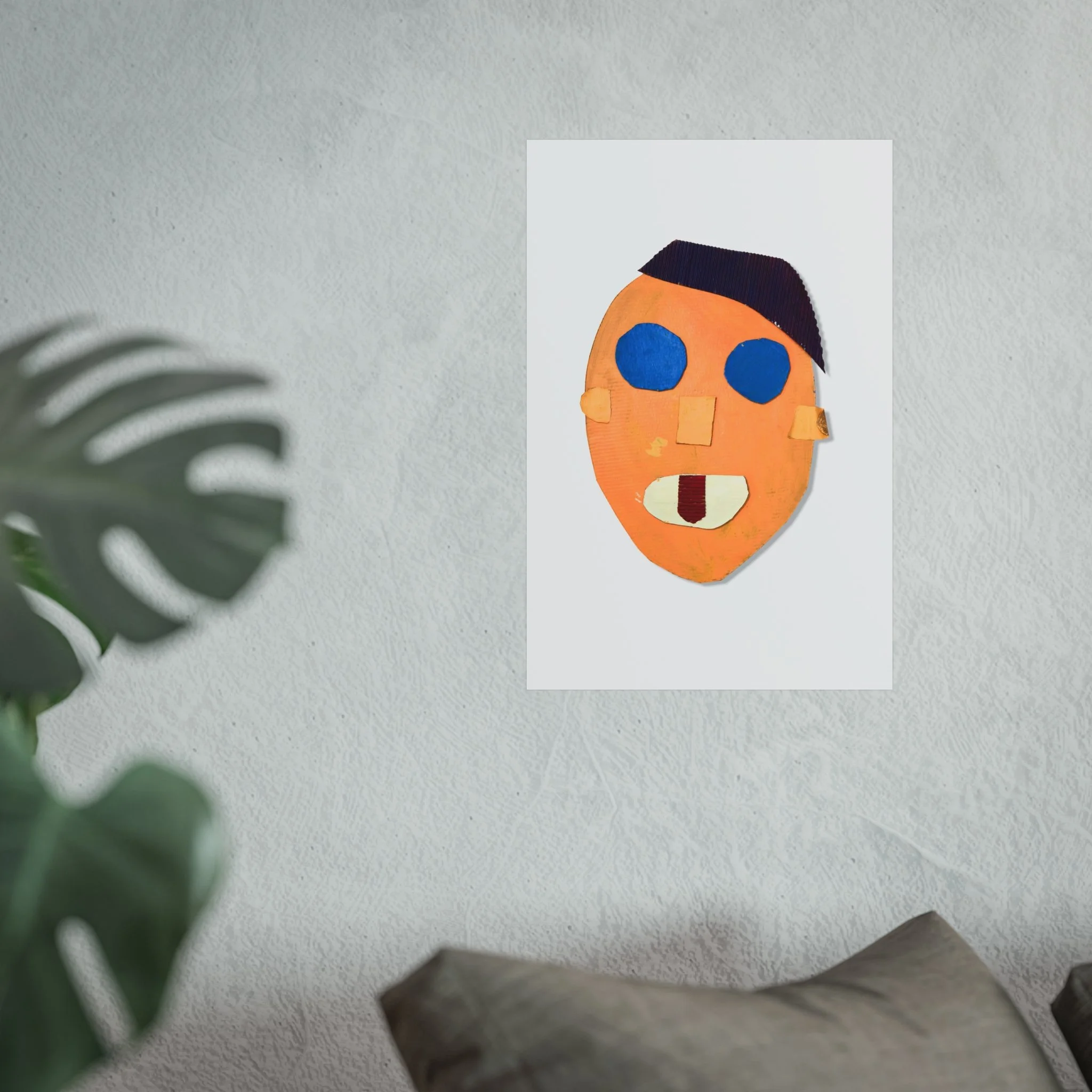 This gallery-style fine art poster brings a playful, handmade spirit to any wall. The artwork — a bold, childlike face rendered in cut-paper shapes and warm tones — feels both whimsical and honest. Printed in giclée quality on smooth, acid-free 220 gsm paper, the matte surface keeps glare low and colors true. It slips easily into horizontal, vertical, or square layouts and works as a striking focal point above a sofa, in a creative workspace, or in a nursery that celebrates imagination. The subtle texture of the paper and the REACH-certified inks give the piece a museum-quality presence while remaining responsibly produced with EUTR-compliant woodstock sourced from the UK.