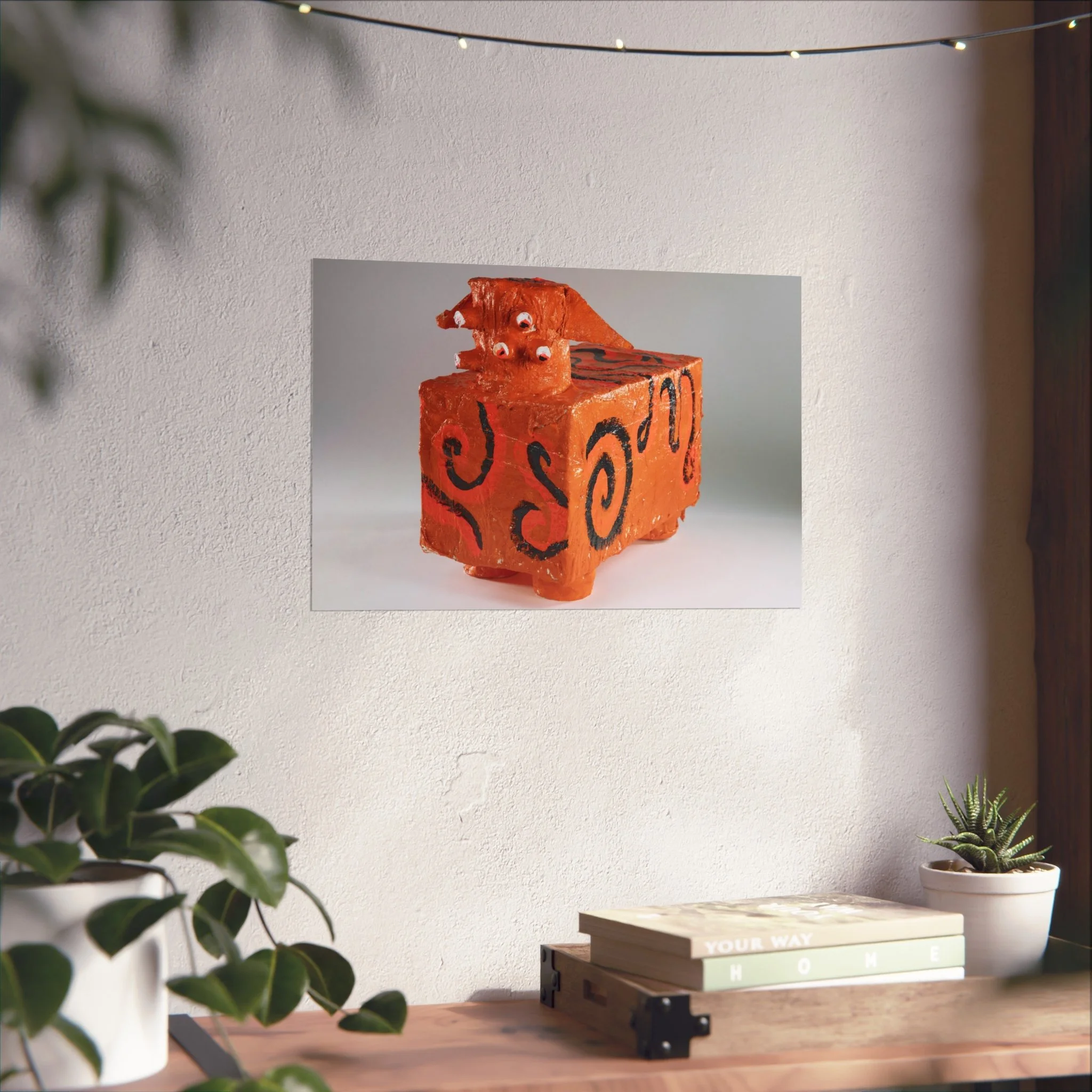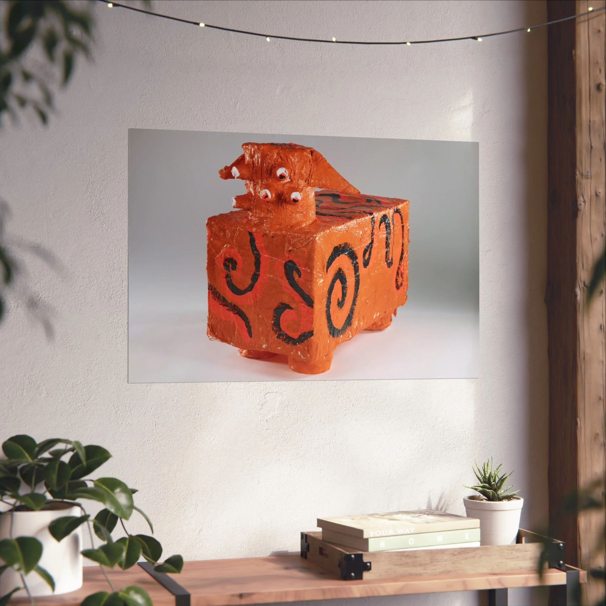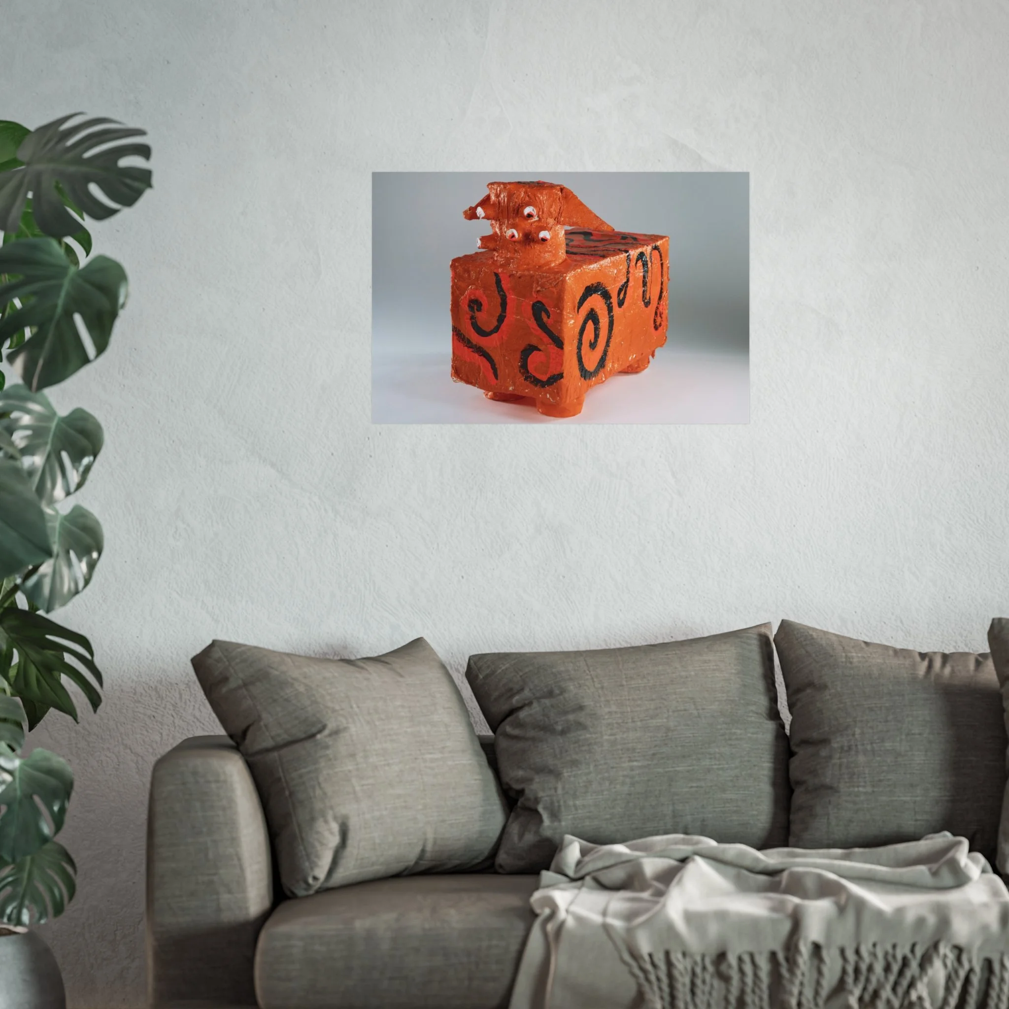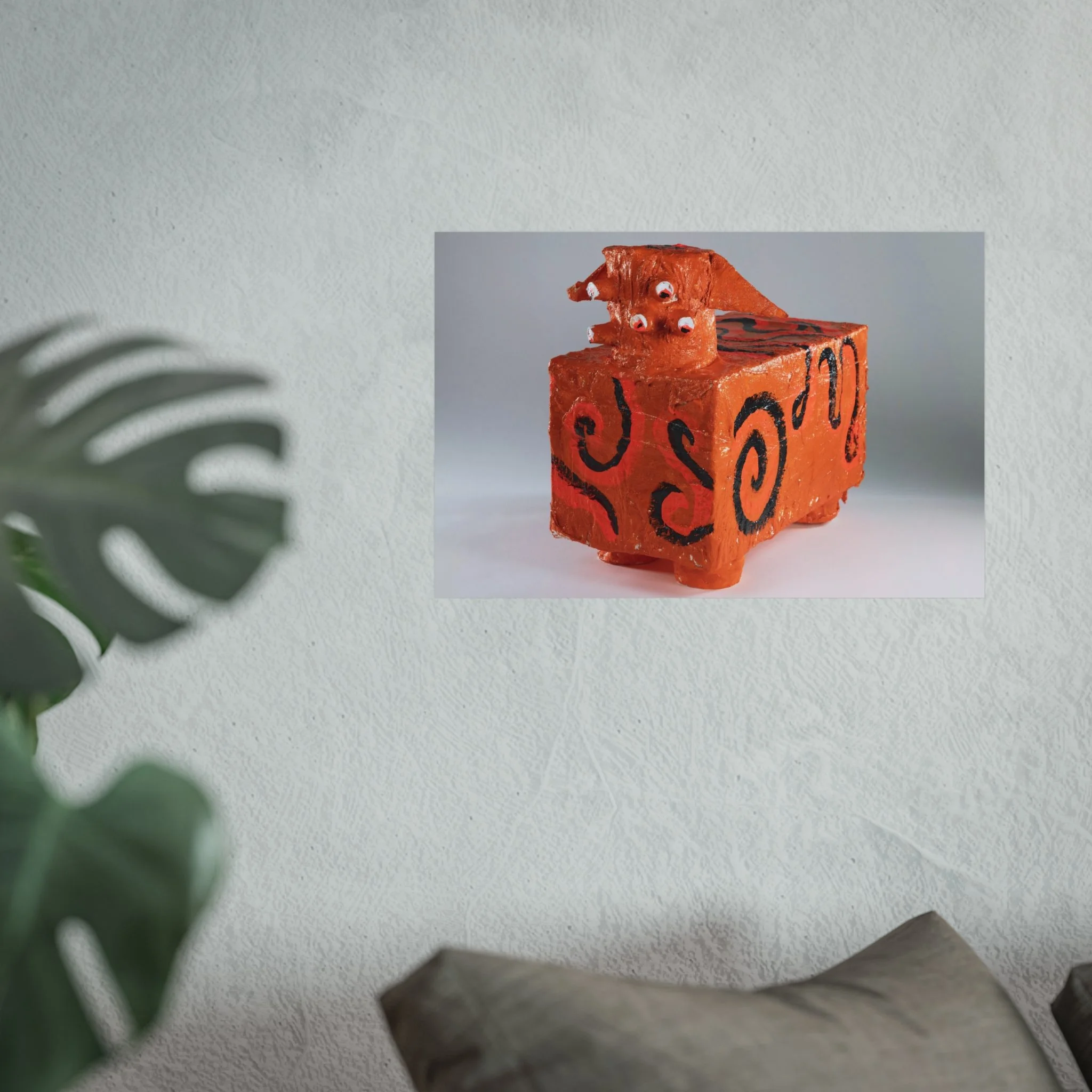 A gallery-quality art poster that brings a playful, handcrafted energy to walls. Printed with archival giclée techniques on smooth, acid-free 220gsm paper, the image’s textured orange tones and bold black swirls read like a whimsical sculpture captured in still life. The matte finish keeps reflections low and colors true, so the quirky subject and its tactile details remain the focal point in living rooms, studios, or creative workspaces. Sized and oriented to suit a range of layouts, this print slips effortlessly into modern, eclectic, or craft-forward interiors — a visual conversation starter that layers warmth and personality into the room.