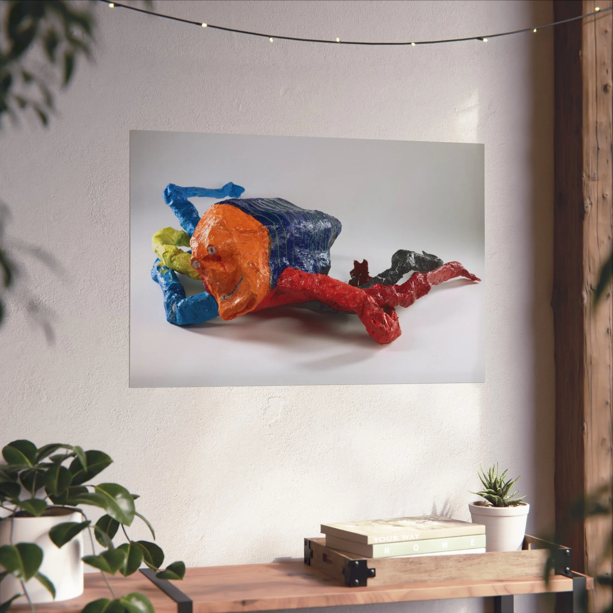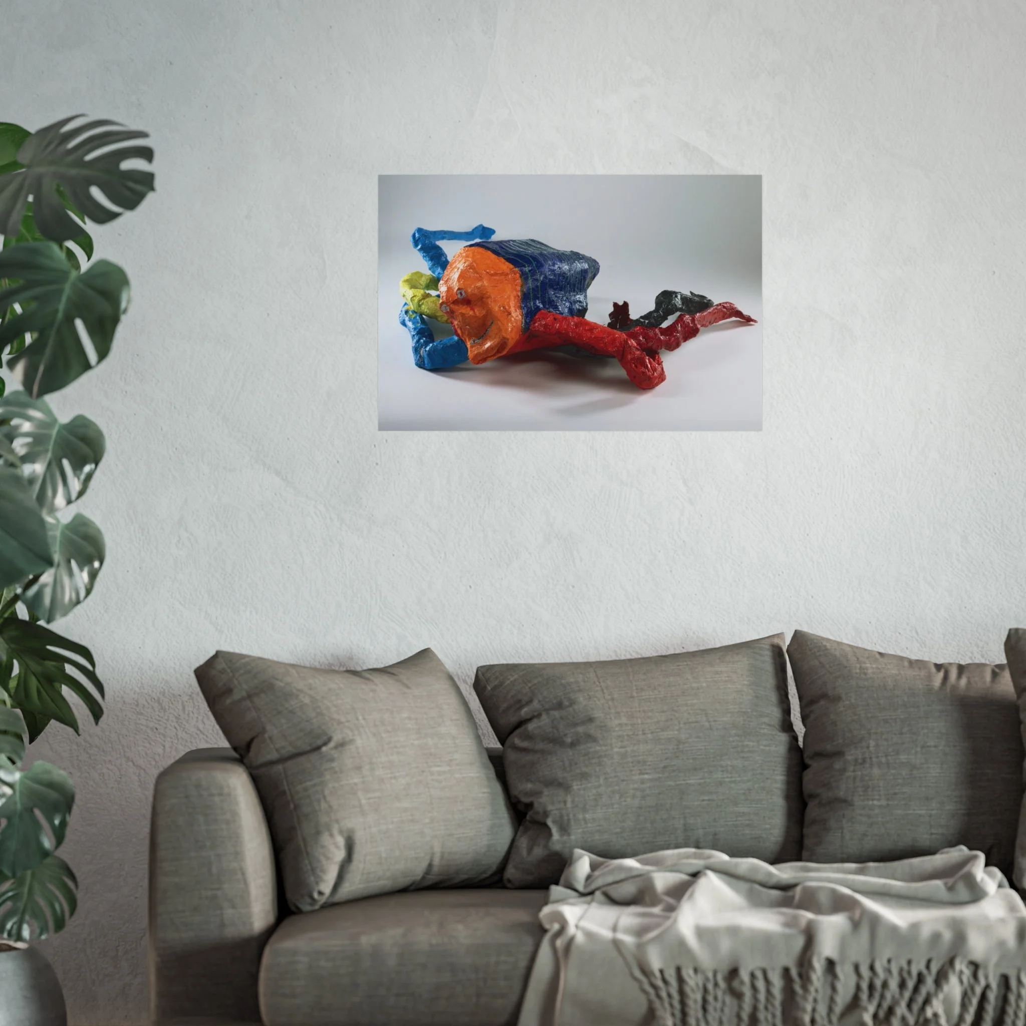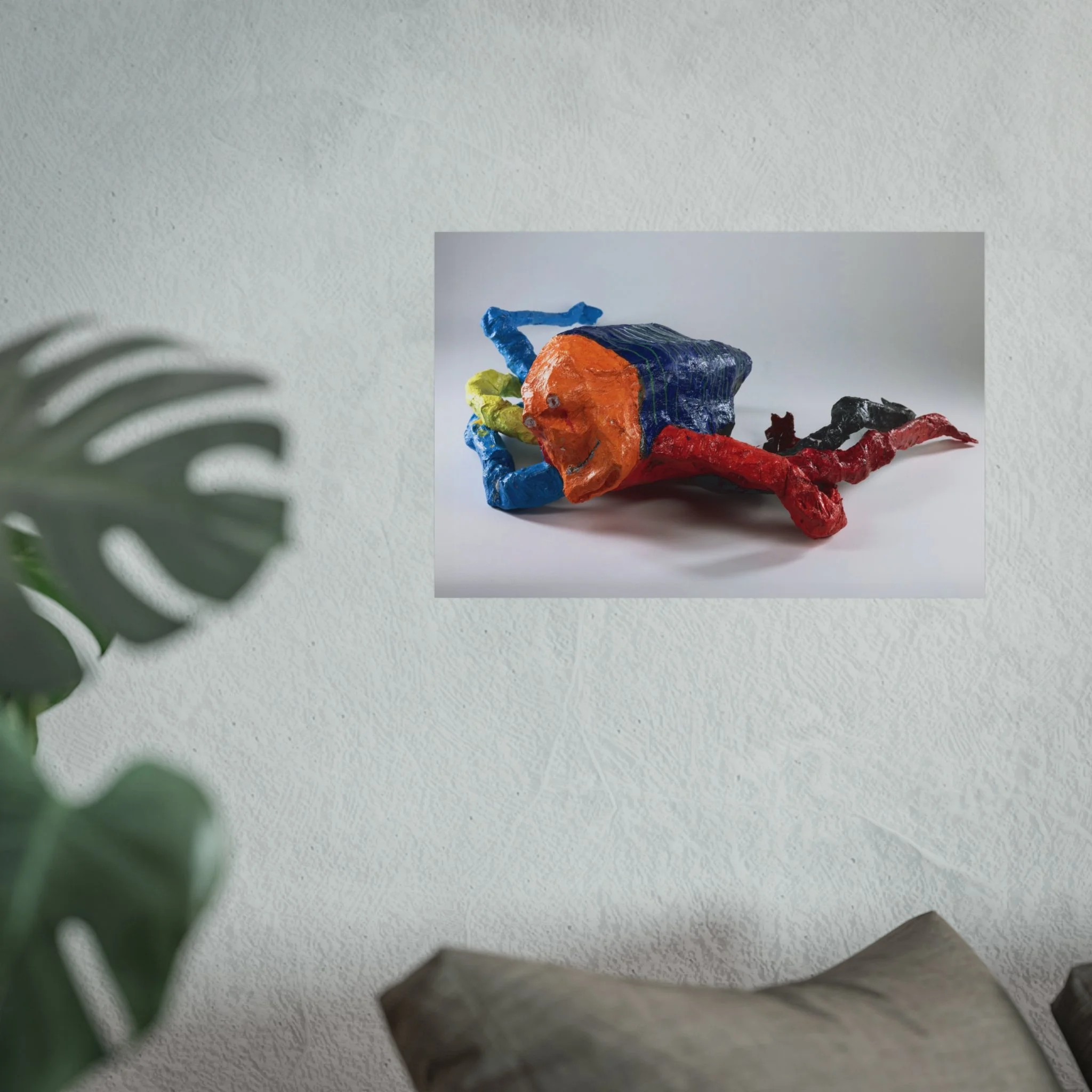 A bold fine art poster that brings playful, sculptural energy to your walls. The giclée print captures rich, saturated colors—bright cobalt, tangerine, crimson and deep onyx—rendered with REACH-certified inks on smooth, gallery-grade 220gsm paper. The matte surface reduces glare while preserving texture and brush-like detail, so the piece reads like a photographed sculpture rather than a flat image. Hung in a living room, studio, or creative workspace, it becomes a conversation starter that sparks curiosity and lightness.
